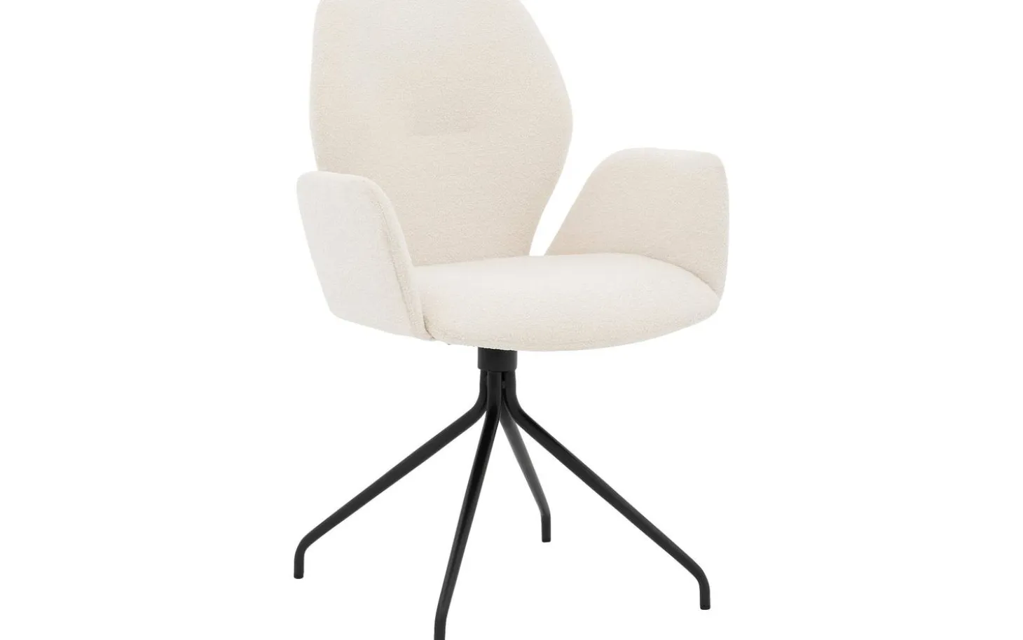 Der weiche Bouclé-Stoff im Naturton (ivory 101) verleiht diesem Esszimmerstuhl eine warme und trendige Ausstrahlung. Dieser Stoff ist nicht nur herrlich weich und angenehm, sondern auch sehr strapazierfähig und für intensive tägliche Nutzung geeignet. Das schwarze Gestell mit Pulverbeschichtung ist gegen Beschädigungen geschützt und bildet einen schönen Kontrast zum weißen Bezug.
