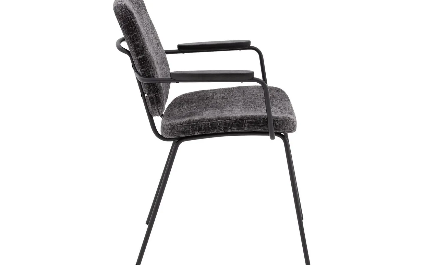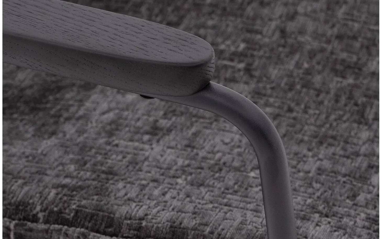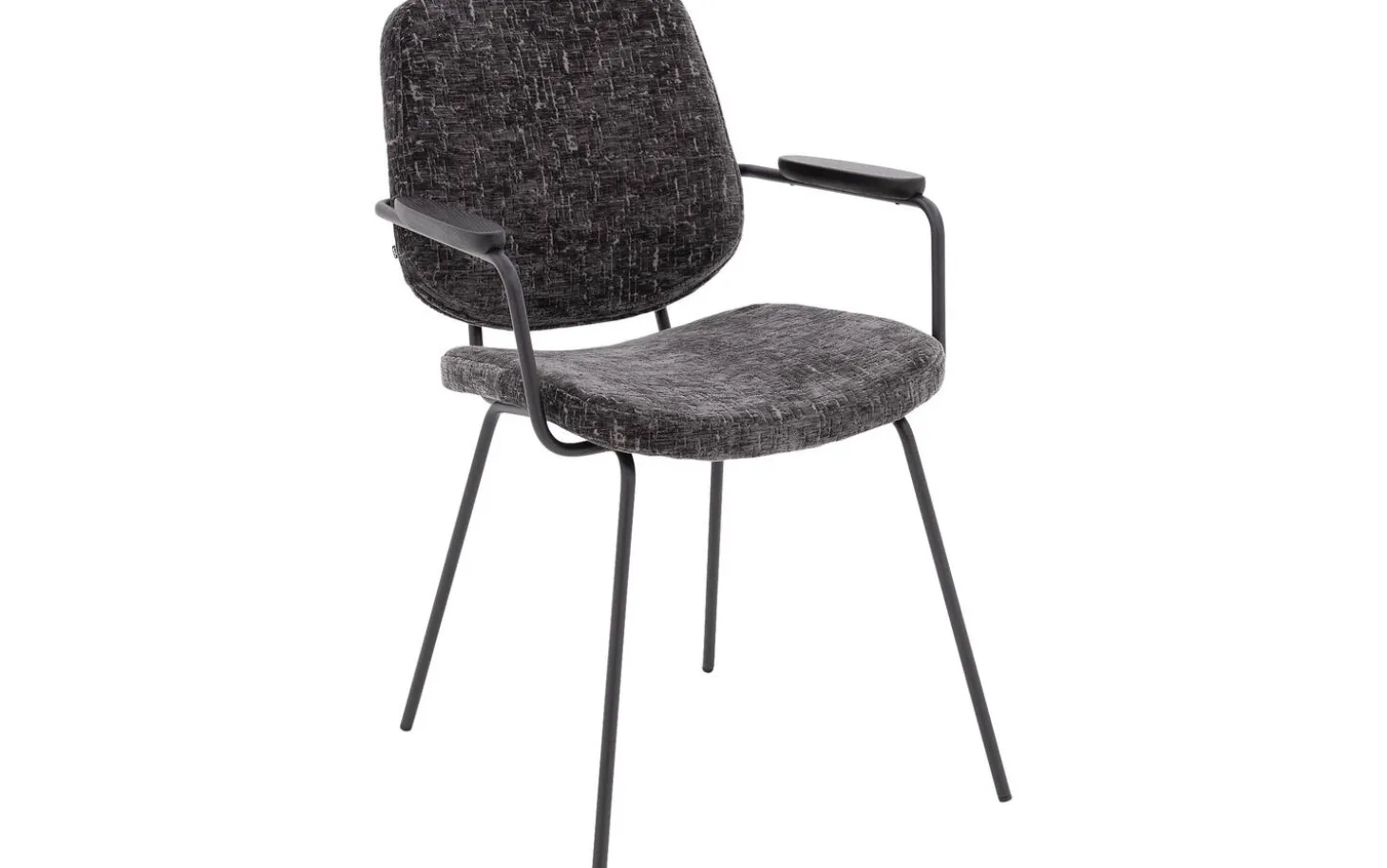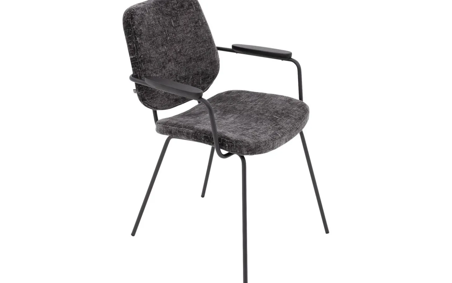 Grauer Esszimmerstuhl Hjalmar mit Armlehne bringt weichen Velours in Ihr Esszimmer. Die abgerundeten Formen und das minimalistische Design verleihen diesem Stuhl aus Stoff eine moderne Ausstrahlung. Der anthrazitgraue Veloursbezug in Kombination mit schwarz pulverbeschichteten Stuhlbeinen sorgt für ein zeitloses Gesamtbild, das perfekt in ein modernes oder elegant-schickes Interieur passt. Drehen Sie sich nach dem Essen um? Dann ist der praktische Handgriff an der Rückenlehne ein nützliches Detail.