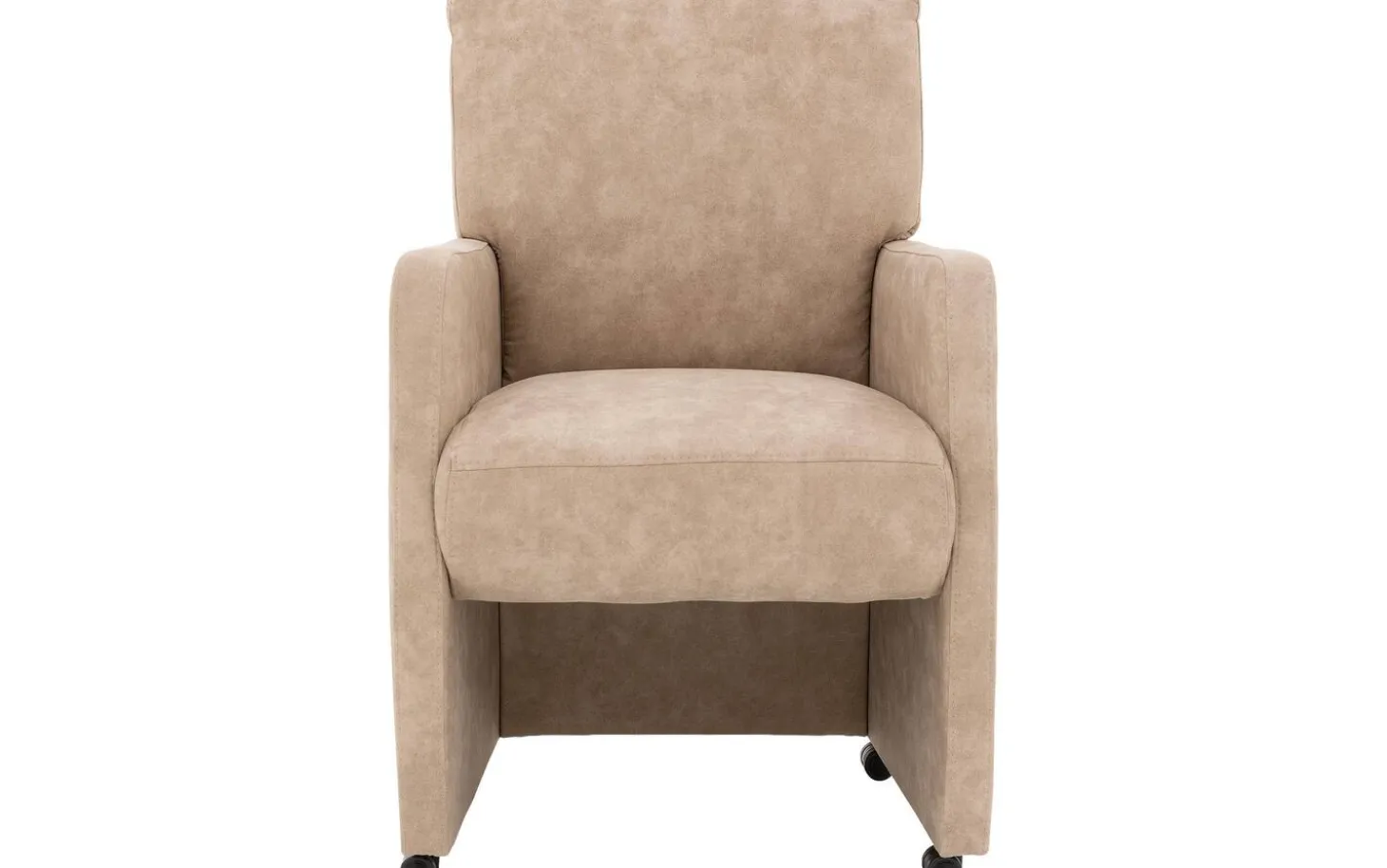 Beige Esszimmerstuhl Leen mit Armlehne kombiniert modernes Design mit praktischem Komfort. Dieser Mikrofaser-Esszimmerstuhl hat einen stilvoll ländlichen Charakter und eine warme, gemütliche Ausstrahlung. Durch die angenehmen Armlehnen und die feste Sitzfläche können Sie endlos lange am Tisch sitzen. Die praktischen Rollen erleichtern das Heranrücken und Aufstehen, während der praktische Griff an der Rückseite dafür sorgt, dass Sie den Stuhl leicht verschieben können.