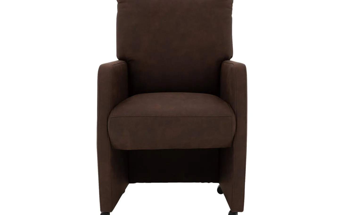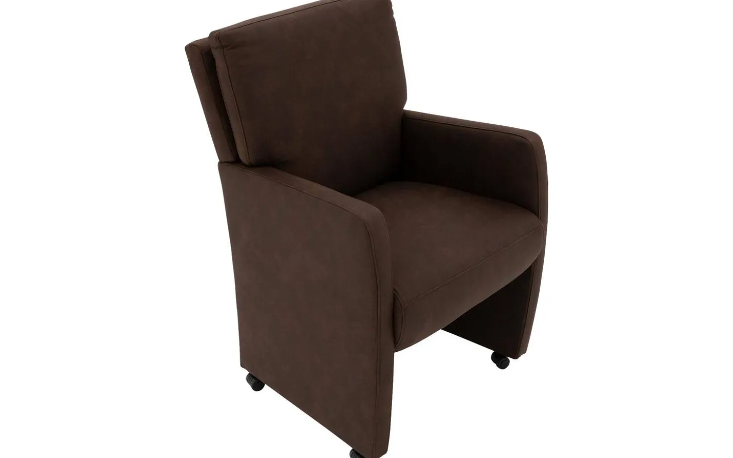 Betrachten Sie den braunen Esszimmerstuhl Leen mit Armlehne! Dieser stilvolle Esszimmerstuhl aus Mikrofaser ist eine wertvolle Ergänzung für Ihre Essecke dank des modernen, zeitlosen Designs. Der warme braune Alcantara-Bezug sorgt für eine stimmungsvolle Ausstrahlung, die sich leicht mit verschiedenen Wohnstilen kombinieren lässt. Nehmen Sie dank der luxuriösen Rollen geschmeidig am Tisch Platz und bewegen Sie den Stuhl einfach mit dem praktischen Griff an der Rückenlehne.