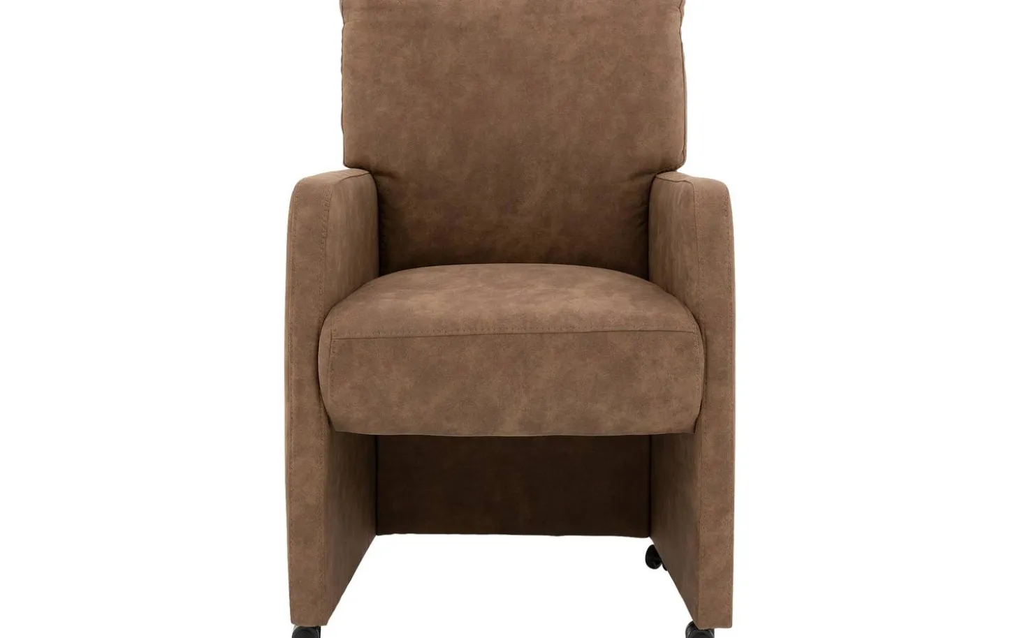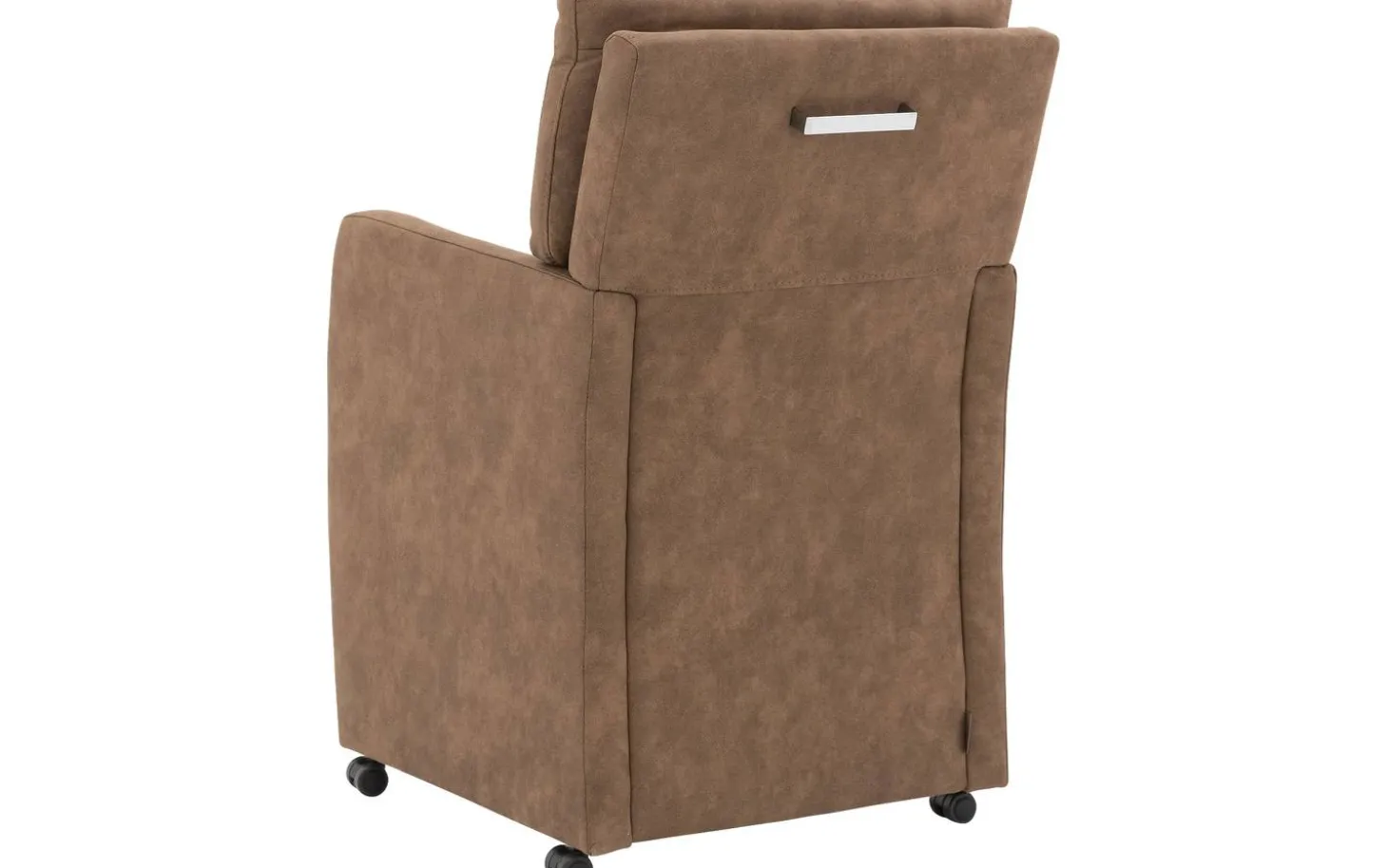 Brauner Esszimmerstuhl mit Armlehne Leen begrüßt Sie mit Stil und Komfort am Esstisch. Der warme Mikrofaserbezug in Kamel verleiht diesem Stuhl eine stimmungsvolle Ausstrahlung, die perfekt zu verschiedenen Einrichtungsstilen passt. Genießen Sie lange Essen dank der angenehmen Armlehnen und der stabilen Sitzfläche. Mit den praktischen Rollen rollen Sie mühelos an den Tisch und stehen in einer fließenden Bewegung wieder auf, während der praktische Griff an der Rückseite das Verstellen besonders einfach macht.