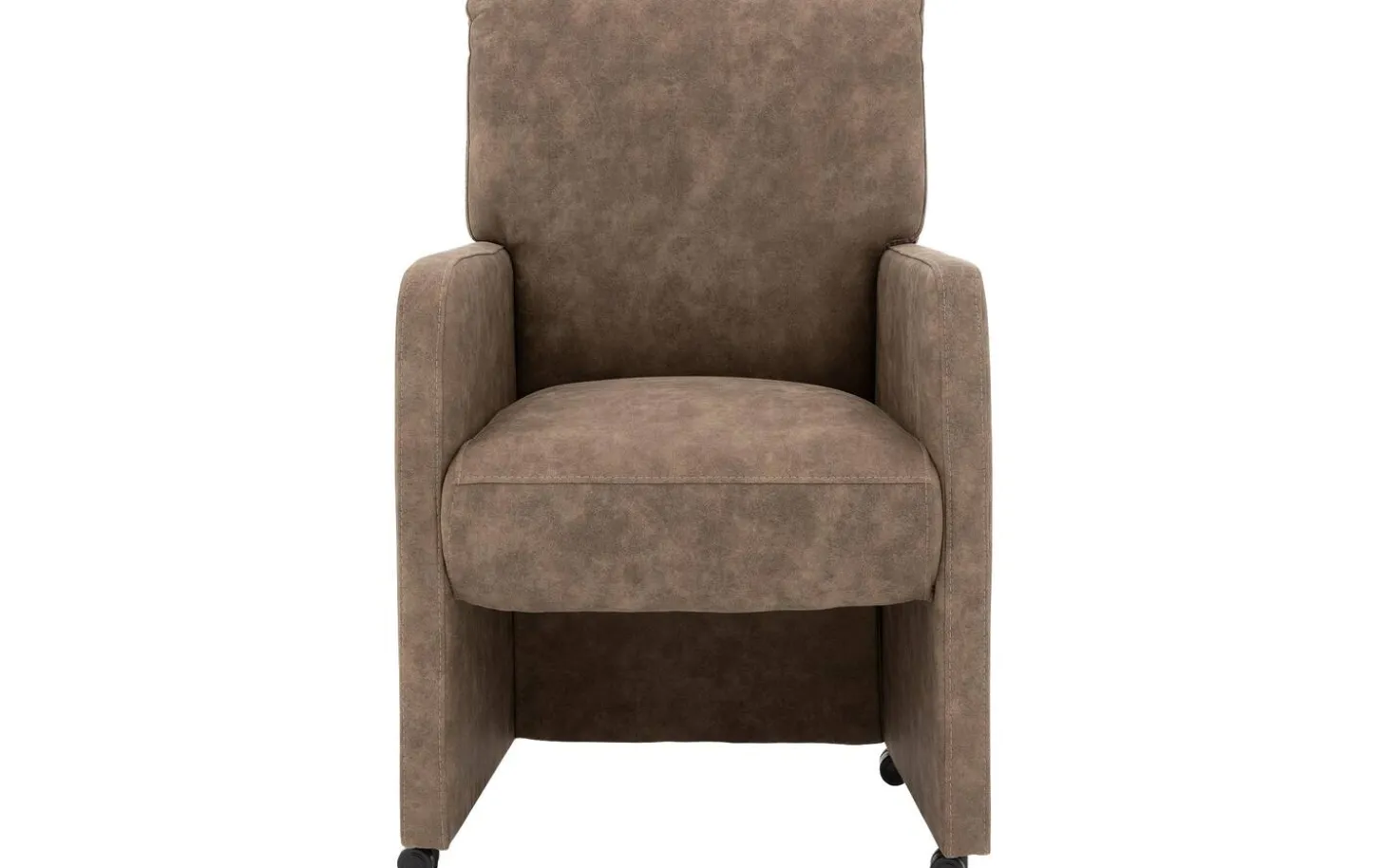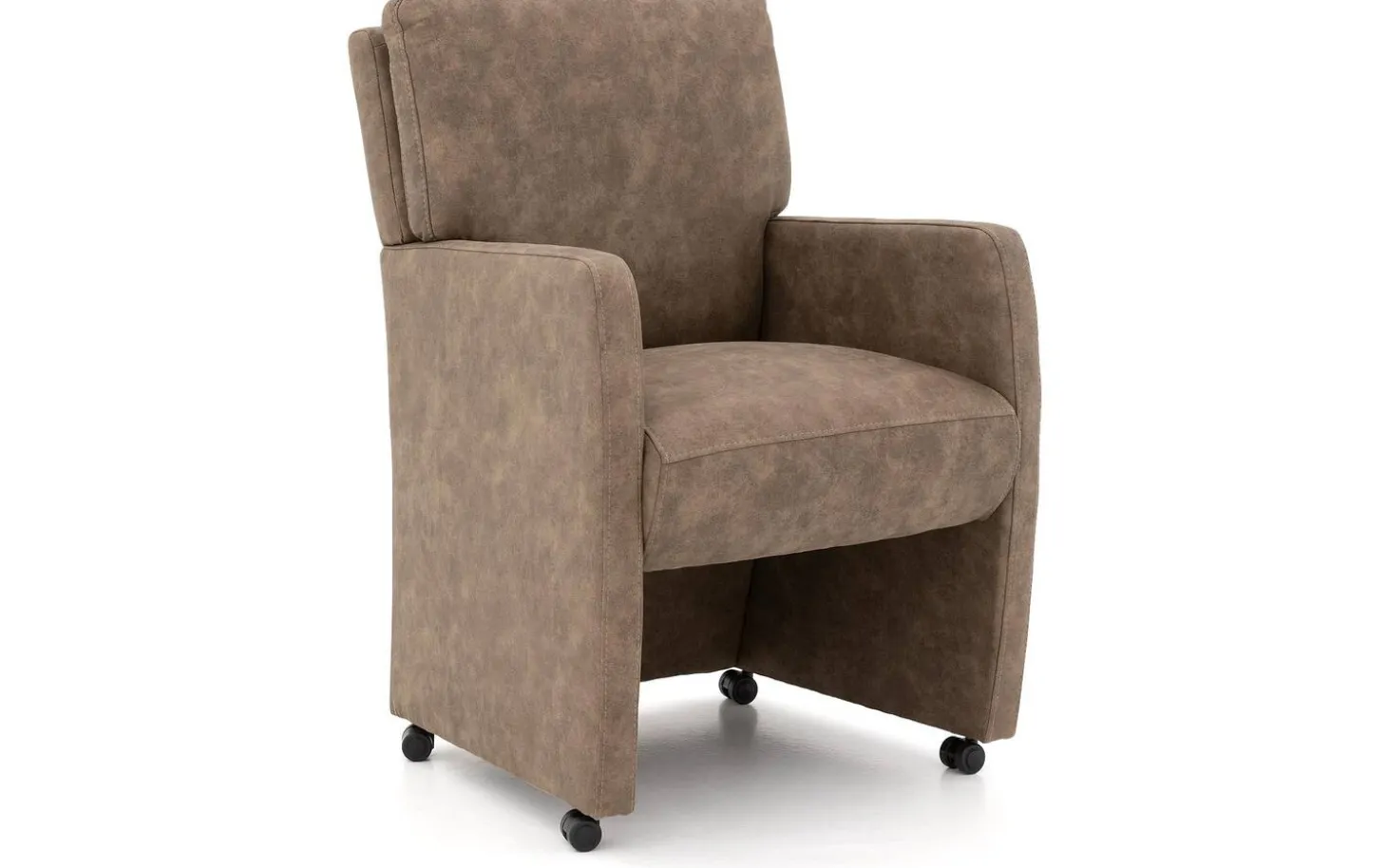 Lernen Sie den braunen Esszimmerstuhl Leen mit Armlehne kennen. Dieser stilvolle Esszimmerstuhl aus Mikrofaser bringt Wärme und Atmosphäre in Ihren Essbereich dank des modernen, zeitlosen Designs. Die angenehmen Armlehnen und die robuste Federung sorgen dafür, dass Sie lange und bequem am Tisch sitzen können. Mit den luxuriösen Rollen und dem praktischen Griff an der Rückseite rücken Sie im Handumdrehen an den Tisch oder bewegen den Stuhl mühelos.