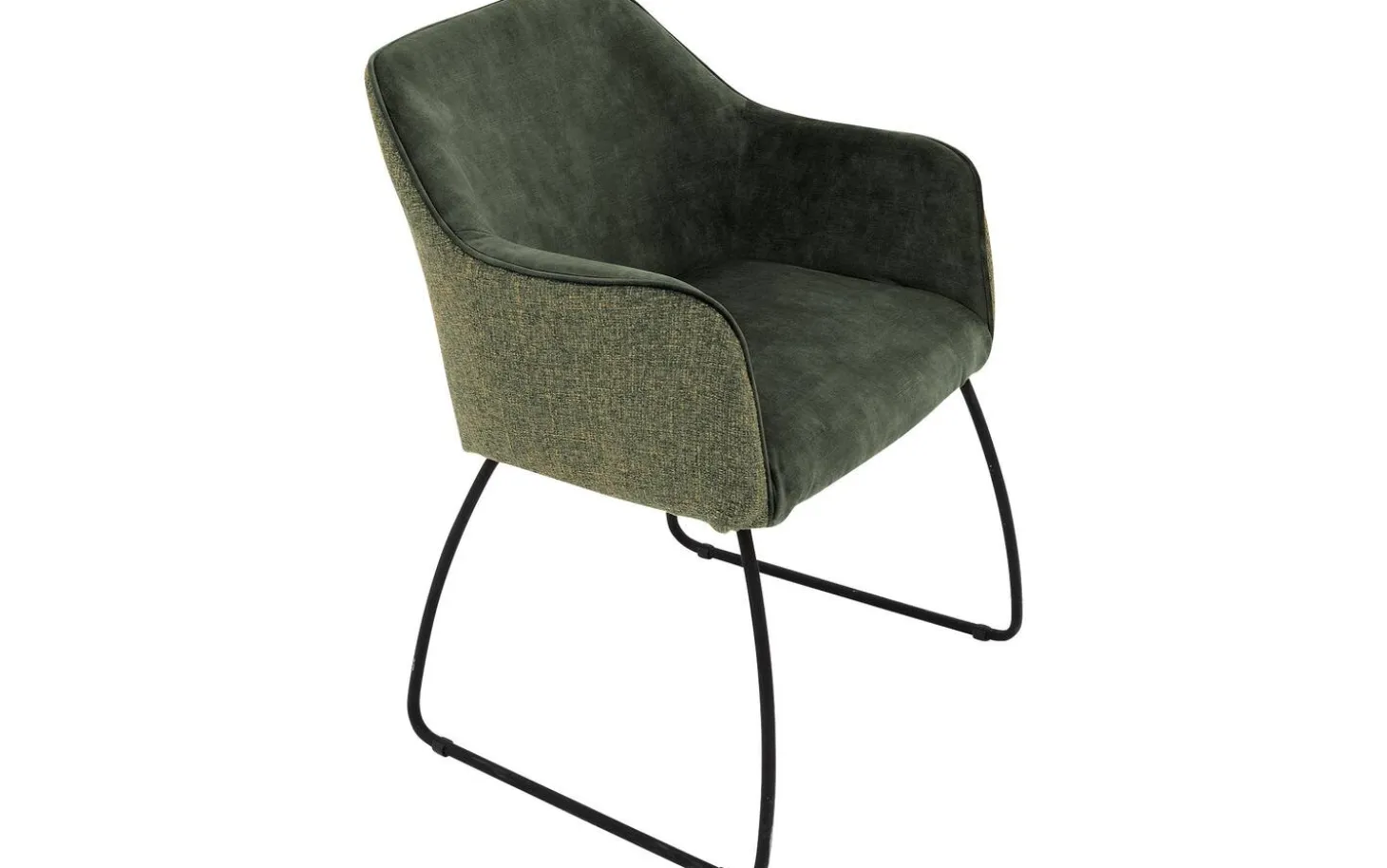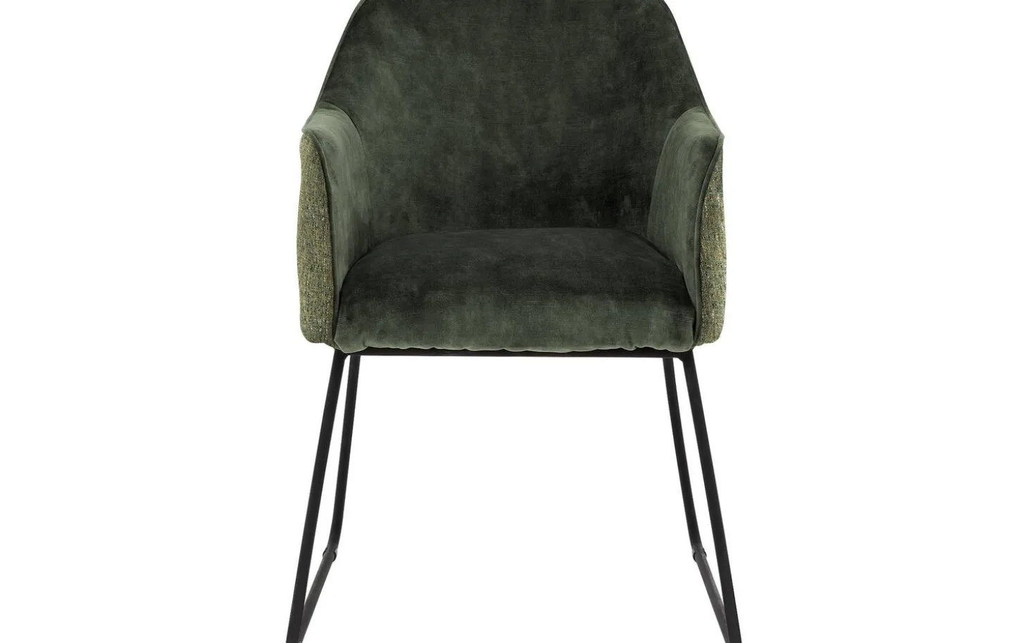 Die schwarz lackierten Beine bilden einen schönen Kontrast zum grünen Stoff und geben dem Stuhl eine moderne Note. Die feste Polsterung sorgt für eine geradlinige Ausstrahlung, die lange schön bleibt. Die Armlehnen sind auf einer angenehmen Höhe von 67 cm platziert für optimale Unterstützung.