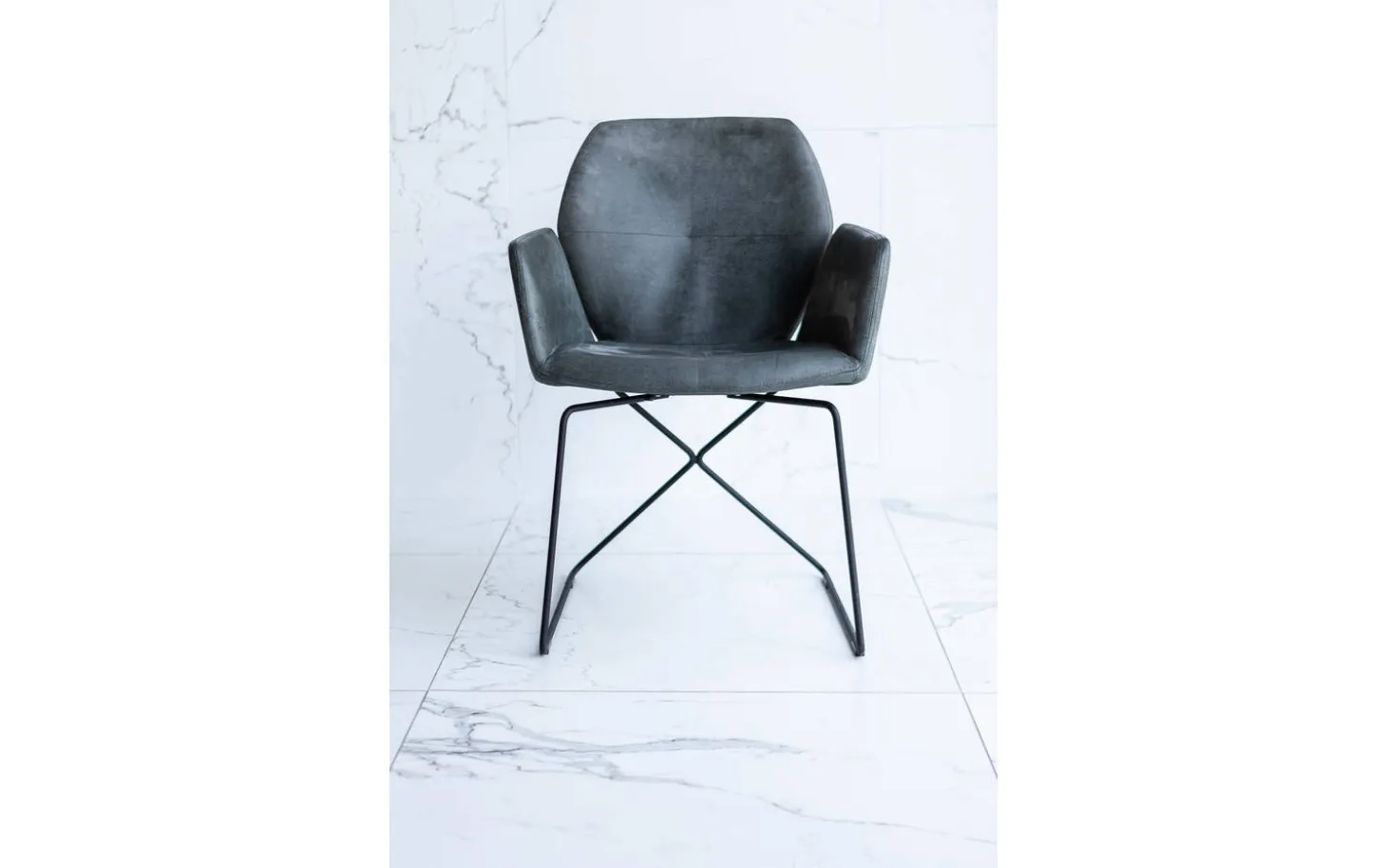 Grauer Esszimmerstuhl Manzini mit Armlehne kombiniert modernes Design mit praktischem Komfort. Dieser Lederstuhl ist ein wunderschönes Designstück mit einem komfortablen Sitz und stilvollen Ziernähten auf der Rückenlehne. Das schlanke pulverbeschichtete Gestell verleiht dem Stuhl einen räumlichen und dezenten Charakter, wodurch er sowohl in großen als auch in kleinen Esszimmern perfekt zur Geltung kommt. Das Büffelleder in Anthrazit sorgt für einen robusten Touch an Ihrem Esstisch.