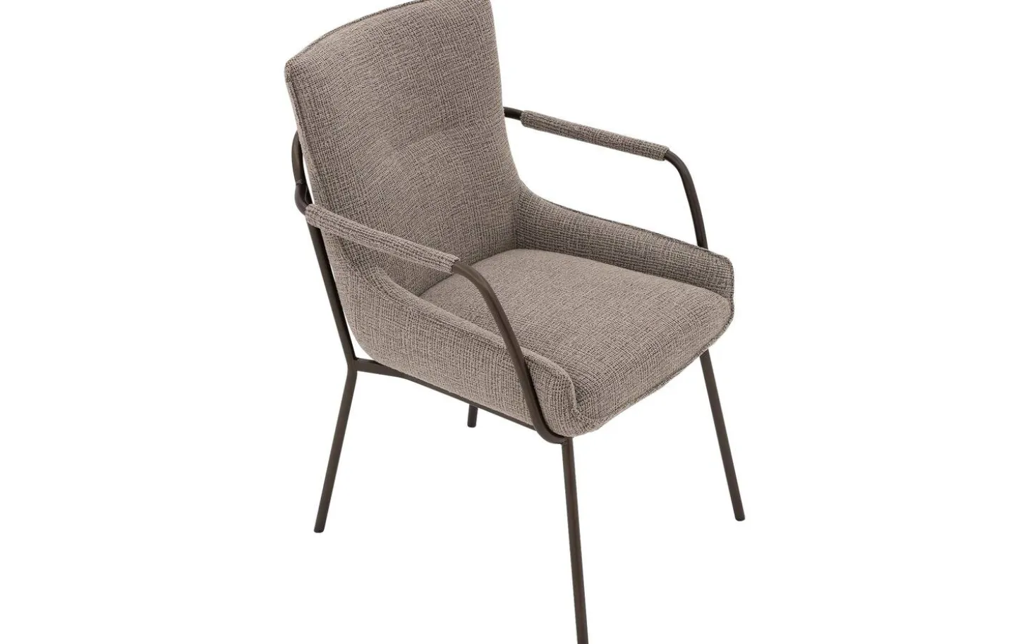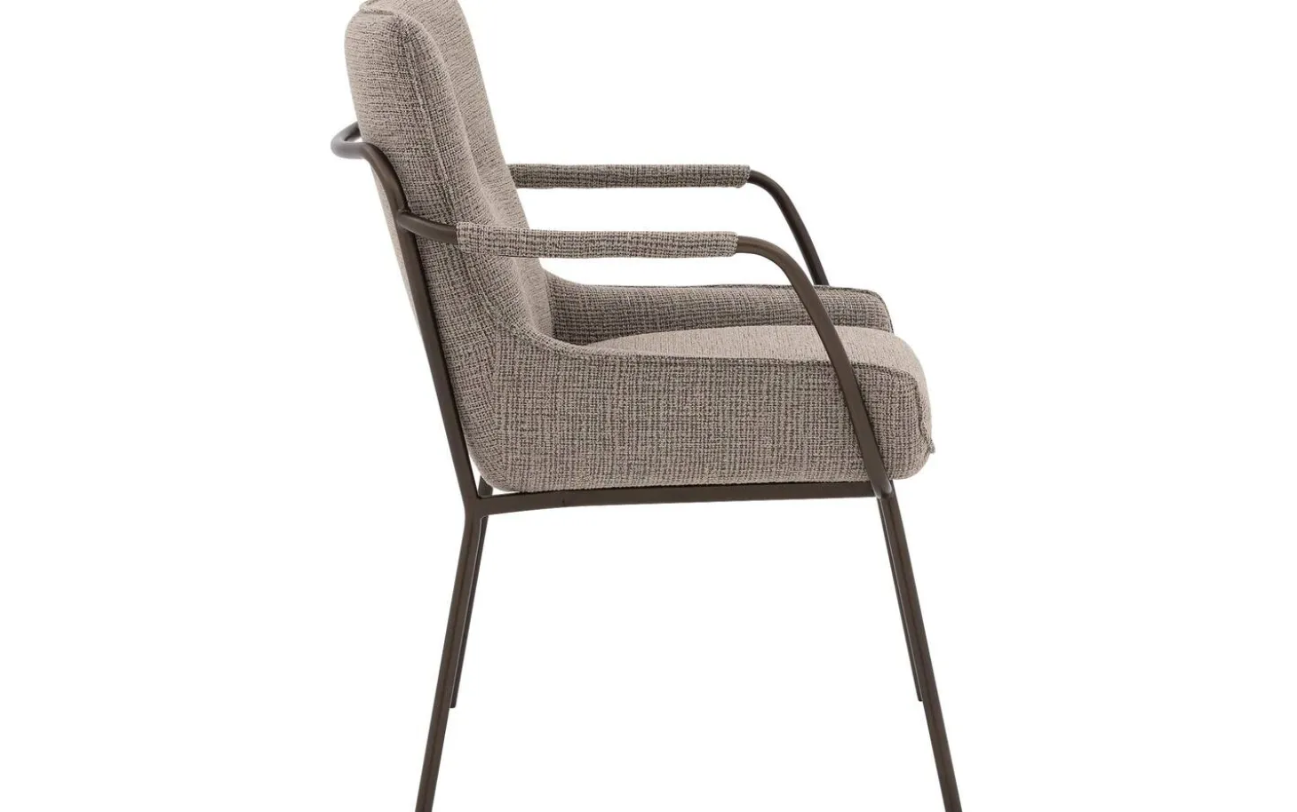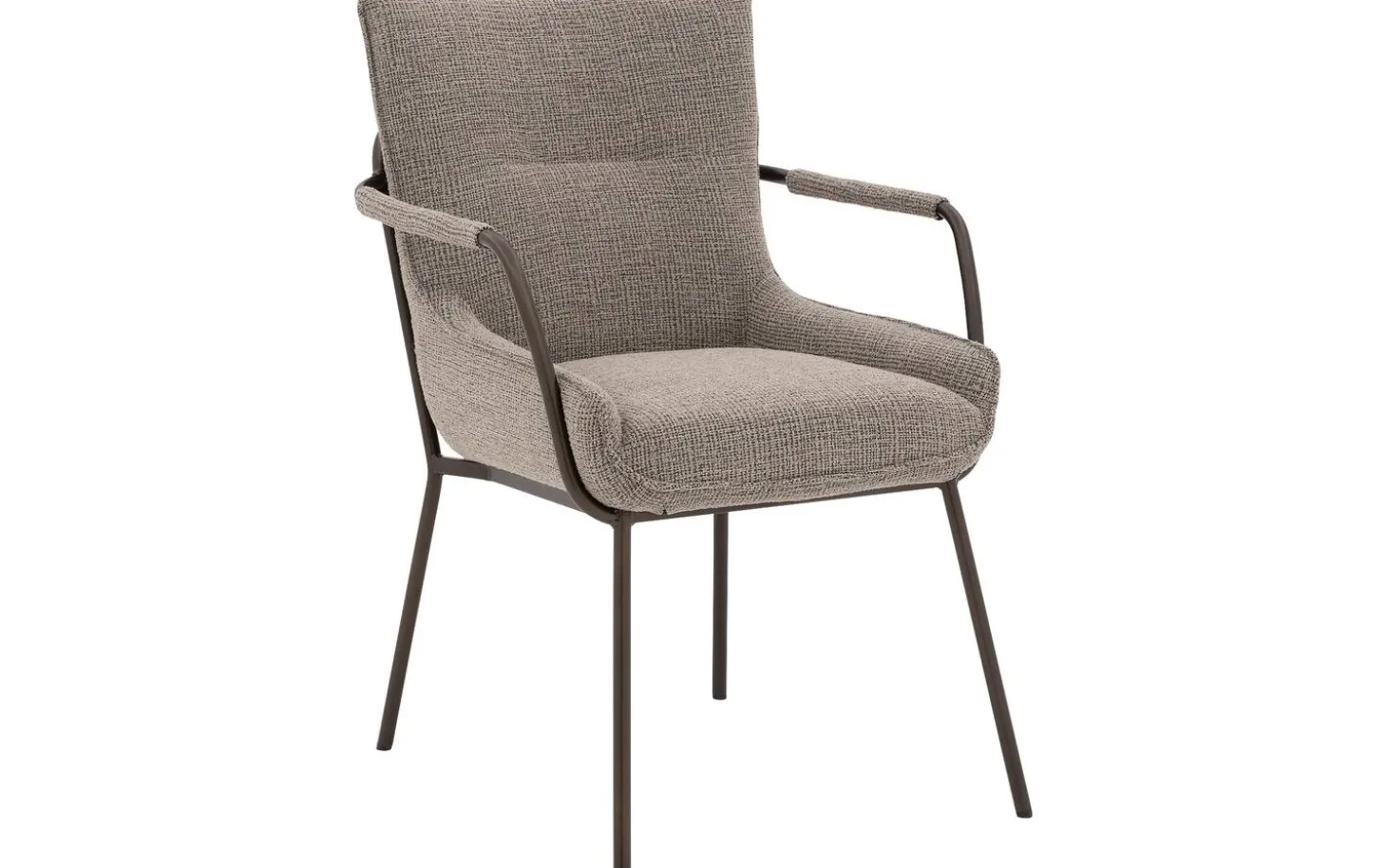Der stilvolle Esszimmerstuhl Matteo hat eine feste Polsterung, die für einen klaren, modernen Look sorgt. Der fein gewebte Stoffbezug in einem warmen Braunton ist nicht nur schön, sondern auch praktisch für den täglichen intensiven Gebrauch. Die Armlehnen mit einer Höhe von 67 cm bieten zusätzlichen Komfort und Unterstützung während langer Mahlzeiten.