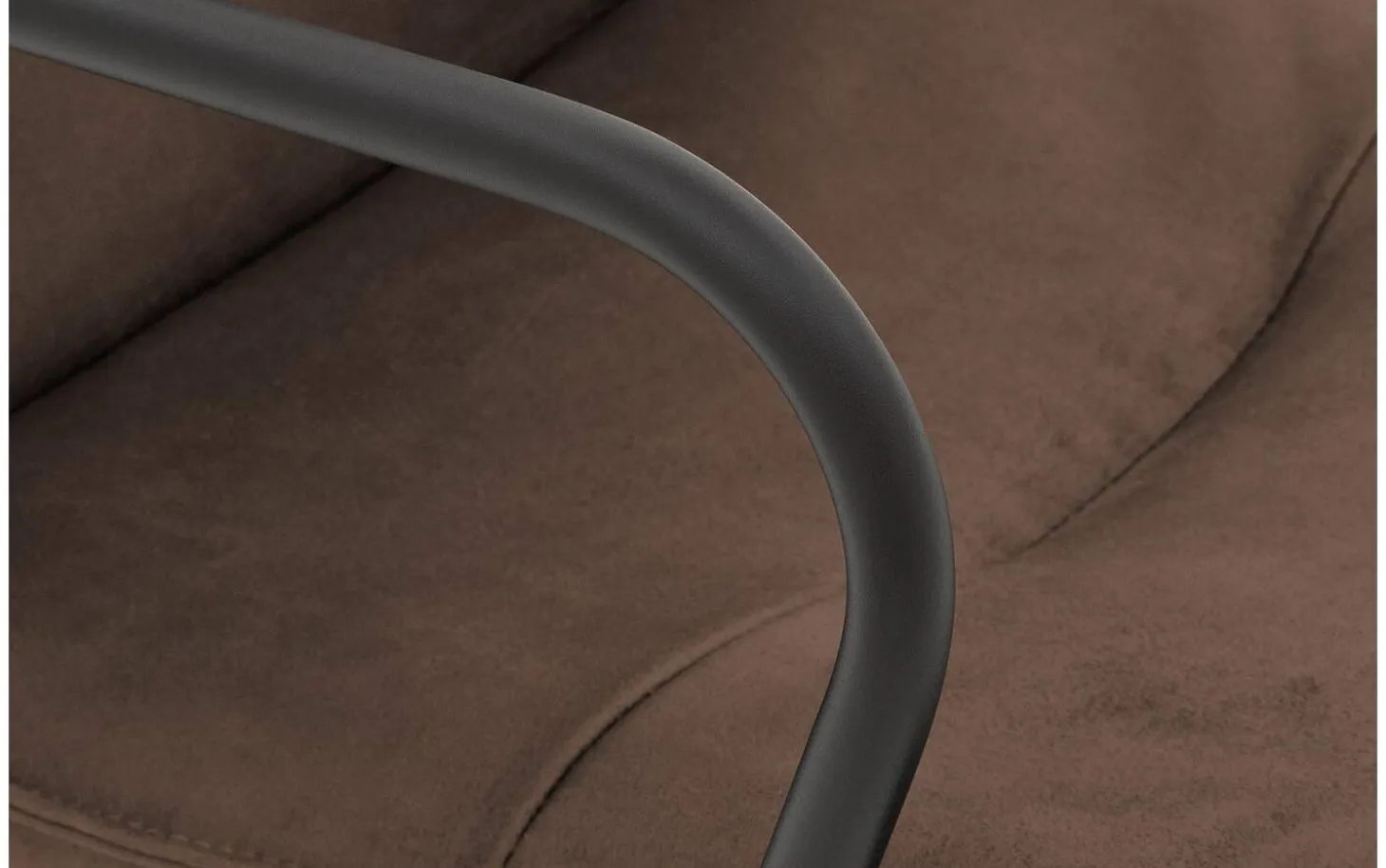 Das schwarze Gestell mit Pulverbeschichtung bildet einen schönen Kontrast zum braunen Bezug und gibt dem Stuhl eine offene und luftige Ausstrahlung. Die feste Polsterung sorgt für einen klaren und modernen Look, der zu verschiedenen Einrichtungsstilen passt, von ländlich bis modern.