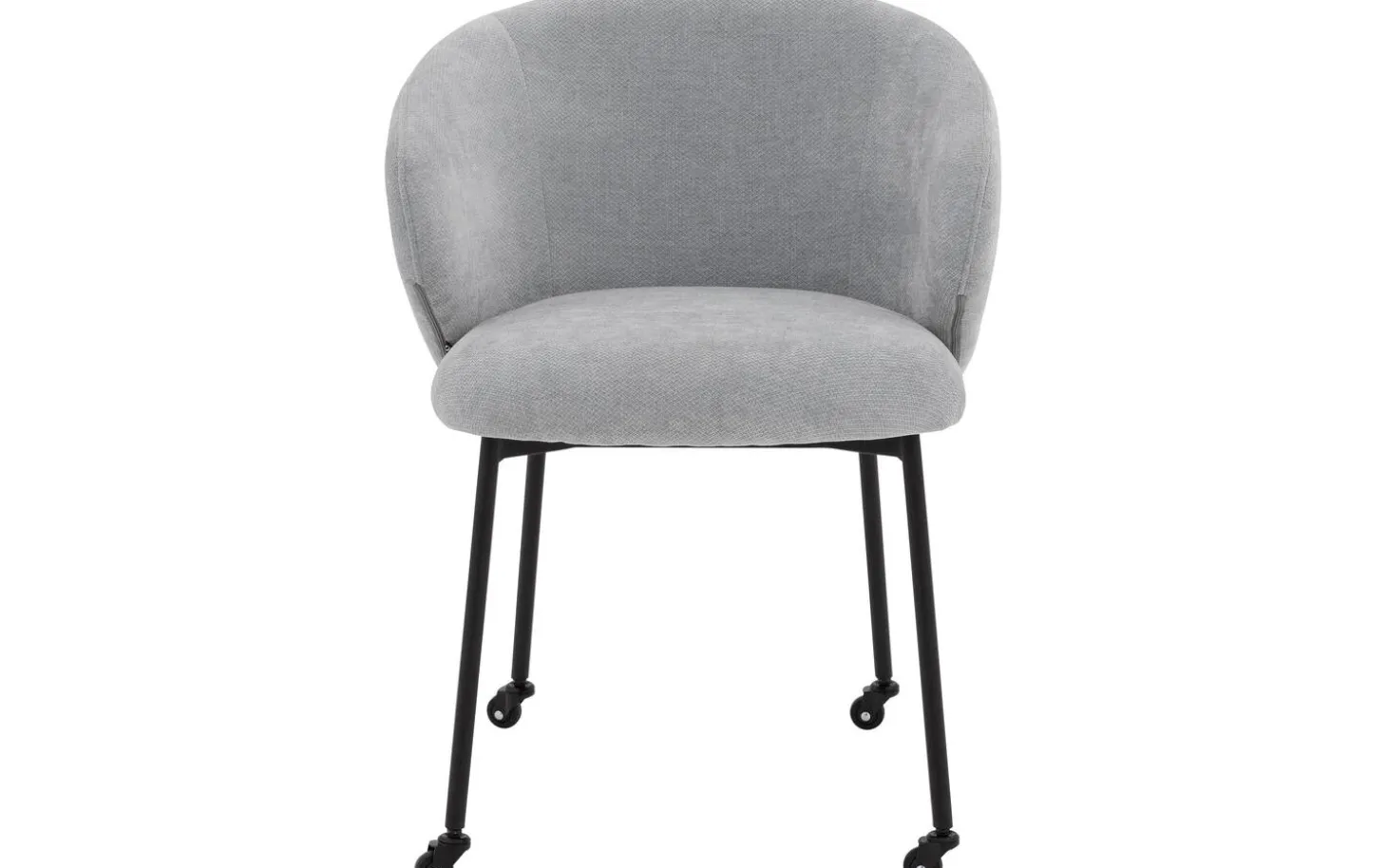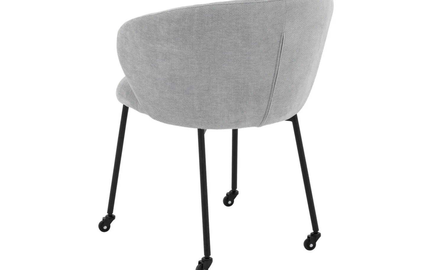 Der blaue Esszimmerstuhl Noomi mit Armlehne bringt Komfort und Charakter an Ihren Esstisch. Dieser Stuhl mit charakteristischer runder Rückenlehne umschließt Ihren Körper während langer Essen. Der eisblau fein gewebte Stoff verleiht dem Stuhl eine zeitgemäße Ausstrahlung, die sofort auffällt. Die praktischen schwarzen Rollen machen das Heranrücken besonders einfach, sodass Sie nur noch die Gesellschaft und das Essen genießen müssen.