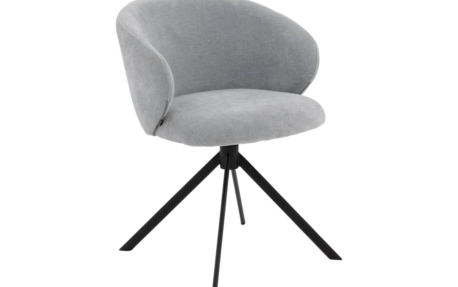Der eisblaue Stoff mit feiner Webung verleiht dem Esszimmerstuhl Noomi eine frische und zeitgemäße Ausstrahlung. Der schwarze Sternfuß mit Pulverbeschichtung bildet einen schönen Kontrast zum blauen Bezug und trägt zum modernen Charakter des Stuhls bei. Die feste Polsterung sorgt für einen klaren, zeitgemäßen Look.