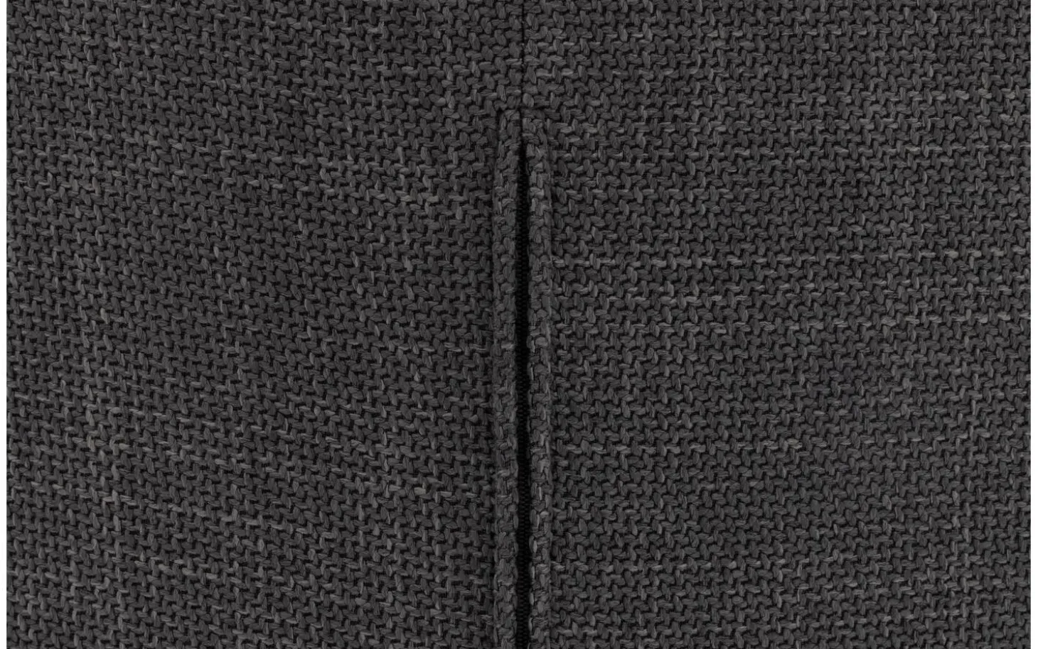 Der dunkelgraue Stoff des Esszimmerstuhls Noomi hat eine charakteristische grob gewebte Struktur, die für eine robuste, aber dennoch raffinierte Ausstrahlung sorgt. Der langlebige Bezug ist fest gepolstert, was zum klaren, modernen Look des Stuhls beiträgt.