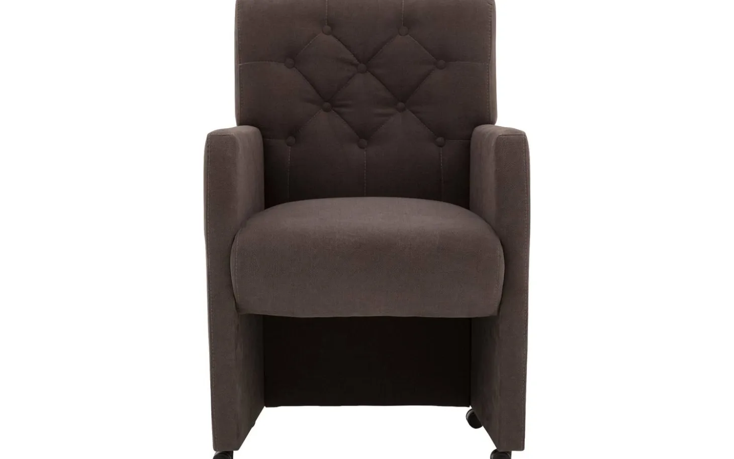Entdecken Sie unseren braunen Esszimmerstuhl Oliver mit Armlehne. Dieser stilvolle Esszimmersessel mit fein gewebtem Stoff sorgt für eine warme Ausstrahlung in Ihrem Esszimmer. Die gepolsterte Rückenlehne verleiht dem Stuhl einen charmanten und charakteristischen Look. Mit den praktischen Rollen rutschen Sie mühelos an den Tisch und stehen in einer fließenden Bewegung wieder auf. Der Griff macht das Umstellen des Stuhls noch einfacher.