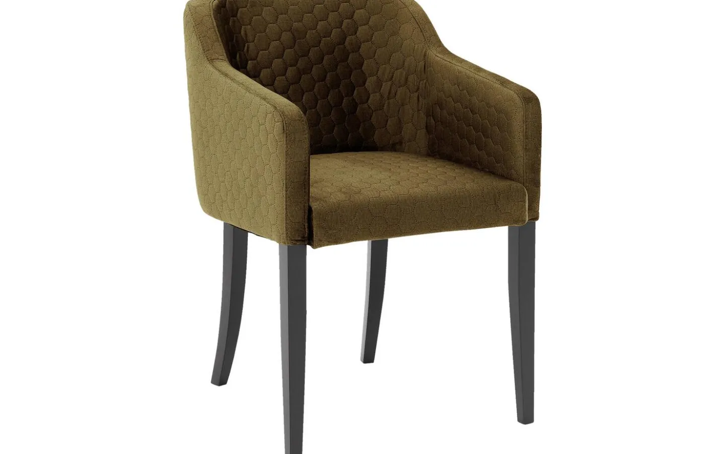 Der grüne Esszimmerstuhl Peda mit Armlehne strahlt Eleganz in Ihrem Essbereich aus. Dieser moderne Stuhl mit konisch zulaufenden schwarzen Beinen besticht durch die stimmungsvolle Wabennaht im Rücken. Der weiche, grüne Velourspolsterbezug (Monolith 38) lädt zum Platznehmen ein und sorgt sofort für eine warme, gemütliche Atmosphäre in Ihrem Interieur. Die schlanken Beine verleihen diesem Stuhl eine luftige Ausstrahlung, wodurch er in nahezu jedem Interieur zur Geltung kommt.