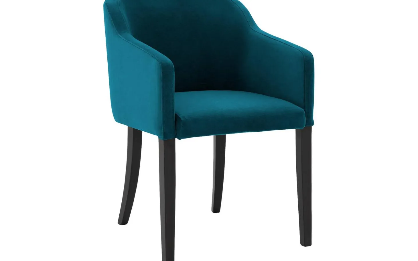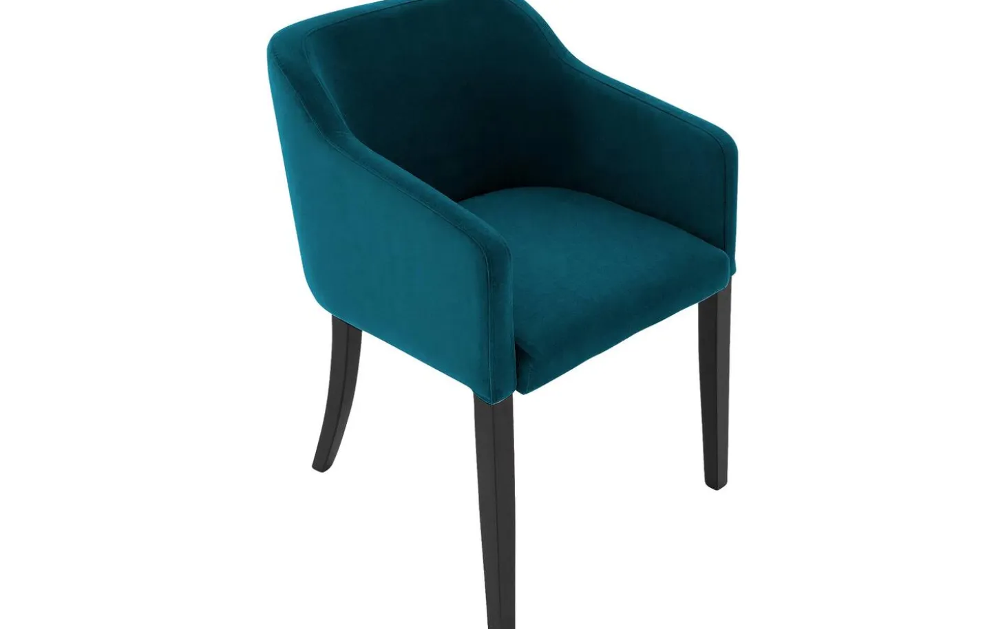 Lernen Sie den blauen Esszimmerstuhl Peda mit Armlehne kennen. Dieser trendige Stuhl mit weicher Velourspolsterung sorgt für eine warme und gemütliche Atmosphäre in Ihrem Essbereich. Der wunderschöne petrolblaue Veloursbezug fühlt sich nicht nur herrlich weich an, sondern verleiht Ihrem Interieur auch sofort eine luxuriöse Ausstrahlung. Mit seinem eleganten Design und den schlanken schwarzen Beinen passt dieser Stuhl perfekt in ein modernes Interieur.