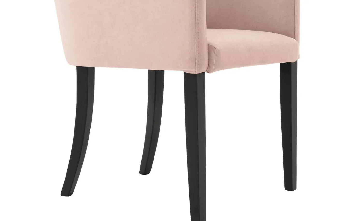 Rosa Esszimmerstuhl Peda mit Armlehne bringt einen eleganten und trendigen Touch in Ihren Essbereich. Dieser Stuhl aus Stoff mit seinem hellrosa Samtbezug fügt Ihrem Interieur sofort Atmosphäre hinzu. Der Stuhl hat sich verjüngende schwarze Beine aus massivem lackiertem Eichenholz, die einen schönen Kontrast zur weichen Polsterung bilden. Perfekt für lange Dinner und gemütliche Mahlzeiten, bei denen Sie dank der komfortablen Armlehnen auch wunderbar nach dem Essen sitzen bleiben können.
