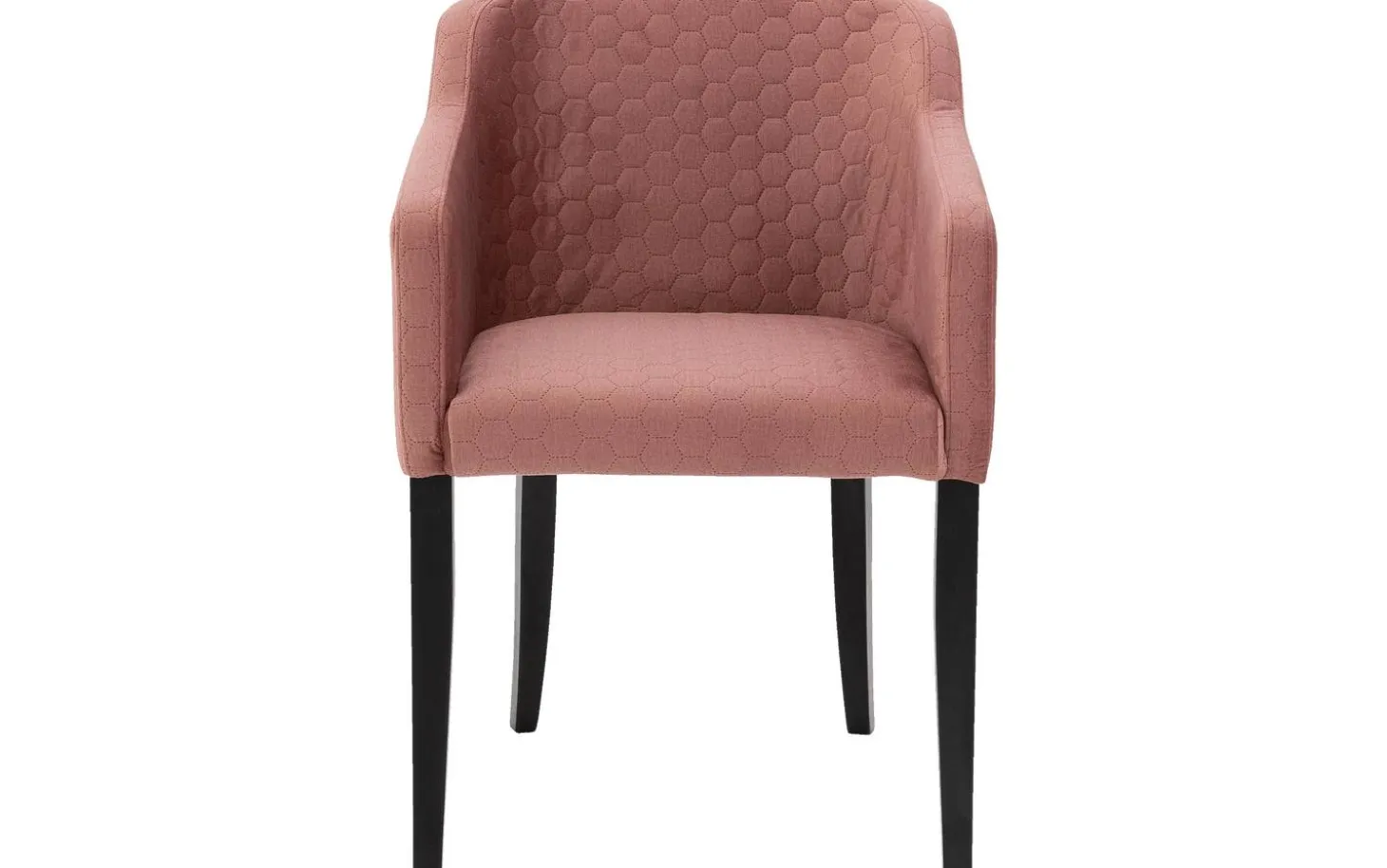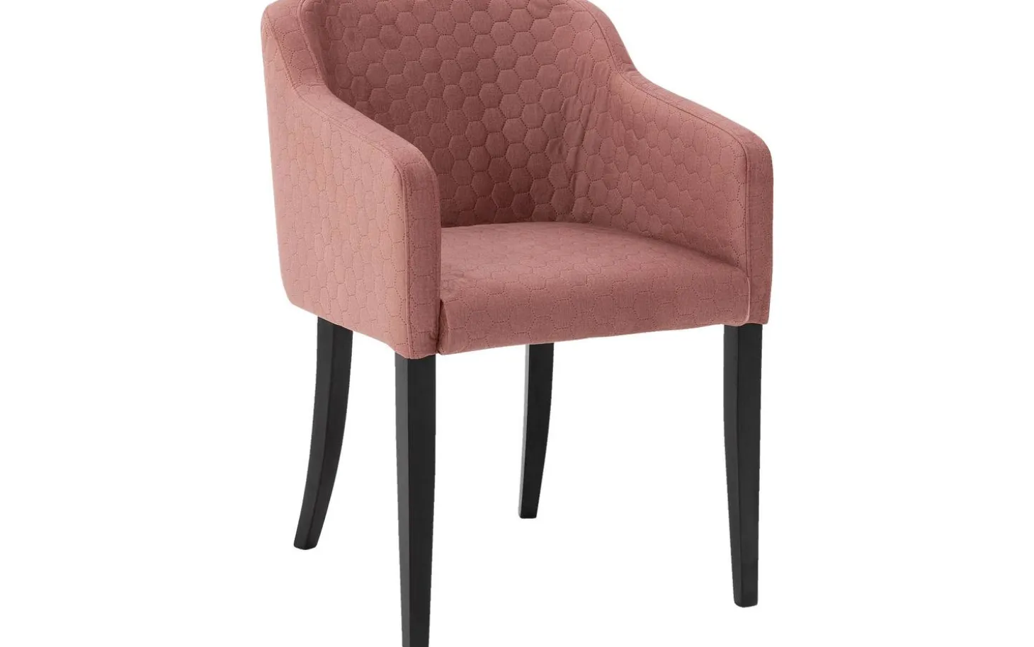Die elegante Ausstrahlung des Esszimmerstuhls Peda wird durch die konisch zulaufenden schwarzen Beine verstärkt, die einen schönen Kontrast zum weichen rosa Velourbezug bilden. Die besondere Wabennaht in der Rückenlehne verleiht dem Stuhl einen einzigartigen Charakter und sorgt für einen stilvollen Akzent in Ihrer Essecke.