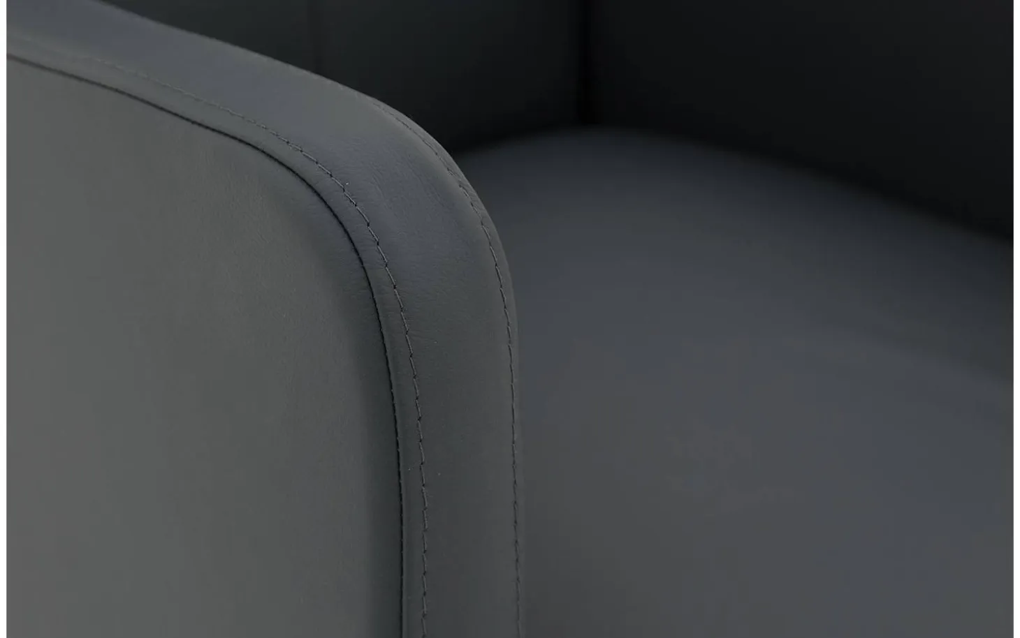 Der dunkelgraue Masterleder-Bezug ist mit einer Schutzschicht versehen, die zusätzlichen Schutz vor Sonnenlicht, Schmutz, Feuchtigkeit und Essensresten bietet. Das Leder ist durchgefärbt, was für eine reiche, tiefe Farbe sorgt, die auch nach jahrelanger Nutzung schön bleibt.