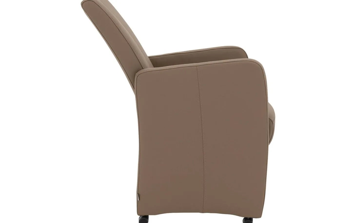Der grüne Esszimmerstuhl Riva mit Armlehne bietet optimalen Tischkomfort mit seinem modernen Design und praktischen Eigenschaften. Dieser Stuhl aus der Goossens Wohnen Excellent Kollektion ist handwerklich mit weichem, strapazierfähigem Masterleder in einer zeitlosen armeegrünen Farbe gepolstert. Die verstellbare Rückenlehne und luxuriöse Rollen machen diesen Stuhl besonders funktional – gleiten Sie leicht an den Esstisch und genießen Sie stundenlange Unterhaltungen.