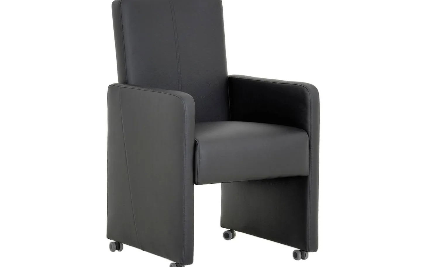 Der schwarze Esszimmerstuhl Rivas mit Armlehne präsentiert sich als zeitgenössischer Stuhl aus Kunstleder zu einem absoluten Weltpreis. Die gepolsterte Armlehne, die bis zum Boden reicht, verleiht diesem Esszimmerstuhl eine stilvolle Ausstrahlung. Mit dem schwarzen Bycasta-Bezug und praktischen Rollen lässt sich mühelos an den Tisch heranrücken, und das Aufstehen vom Tisch wird einfacher. Ein perfektes Sitzmöbel für lange Essen mit Familie und Freunden.
