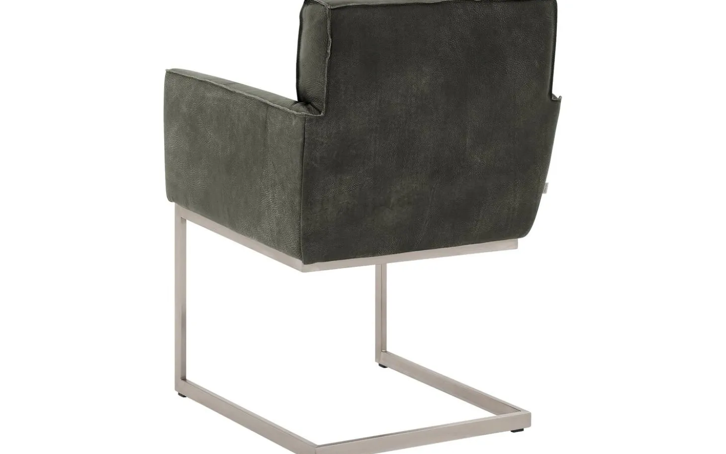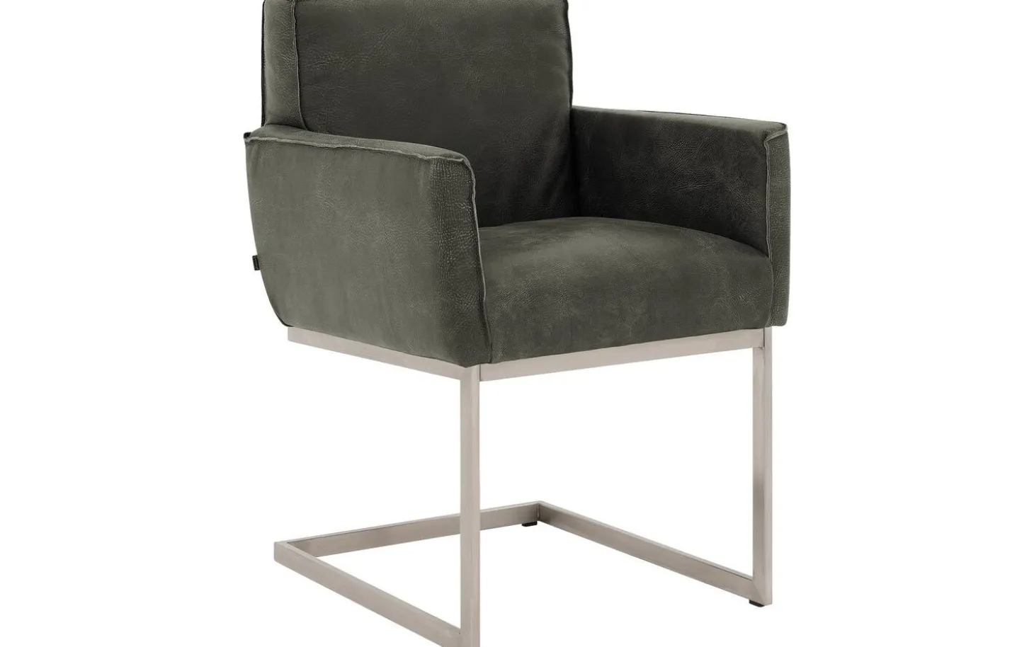 Der grüne Esszimmerstuhl Tom mit Armlehne bietet industrielle Robustheit an Ihrem Esstisch. Dieser dunkelgrüne Esszimmerstuhl aus Buffalo-Leder fühlt sich herrlich weich an und hat eine robuste, wildlederähnliche Ausstrahlung. Die elegante Kappnaht verleiht diesem Stuhl eine handwerkliche Note. Das Besondere an diesem Stuhl ist das Freischwinggestell aus Edelstahl, das leicht mit Ihren Bewegungen mitfedert, wodurch lange Essen besonders komfortabel werden.