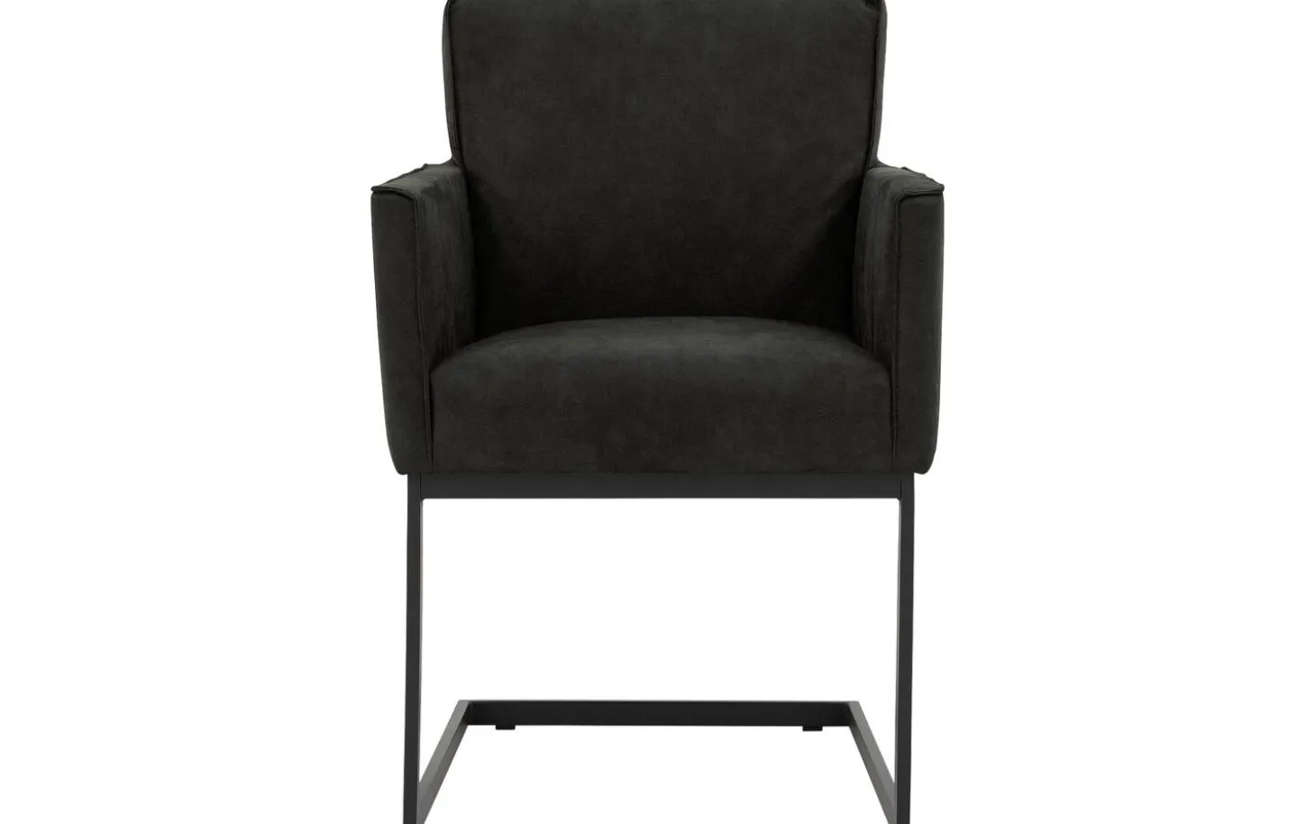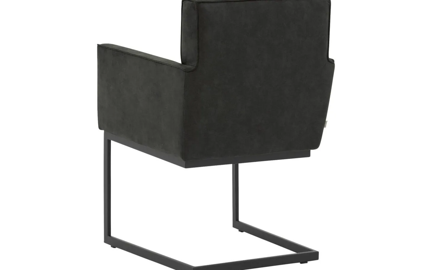 Grauer Esszimmerstuhl Tom mit Armlehne aus Microleder bietet robustem Komfort während langer Essen. Dieser industrielle Esszimmerstuhl lässt Sie gesellige Tischmomente optimal genießen. Dank des anthrazitfarbenen Freischwinggestells federt der Stuhl leicht mit Ihren Bewegungen mit und sorgt für zusätzlichen Sitzkomfort. Das graue Microleder verleiht dem Stuhl eine luxuriöse Ausstrahlung und ist mit einer eleganten Kappnaht versehen, perfekt für ein Interieur mit einer robusten Note.