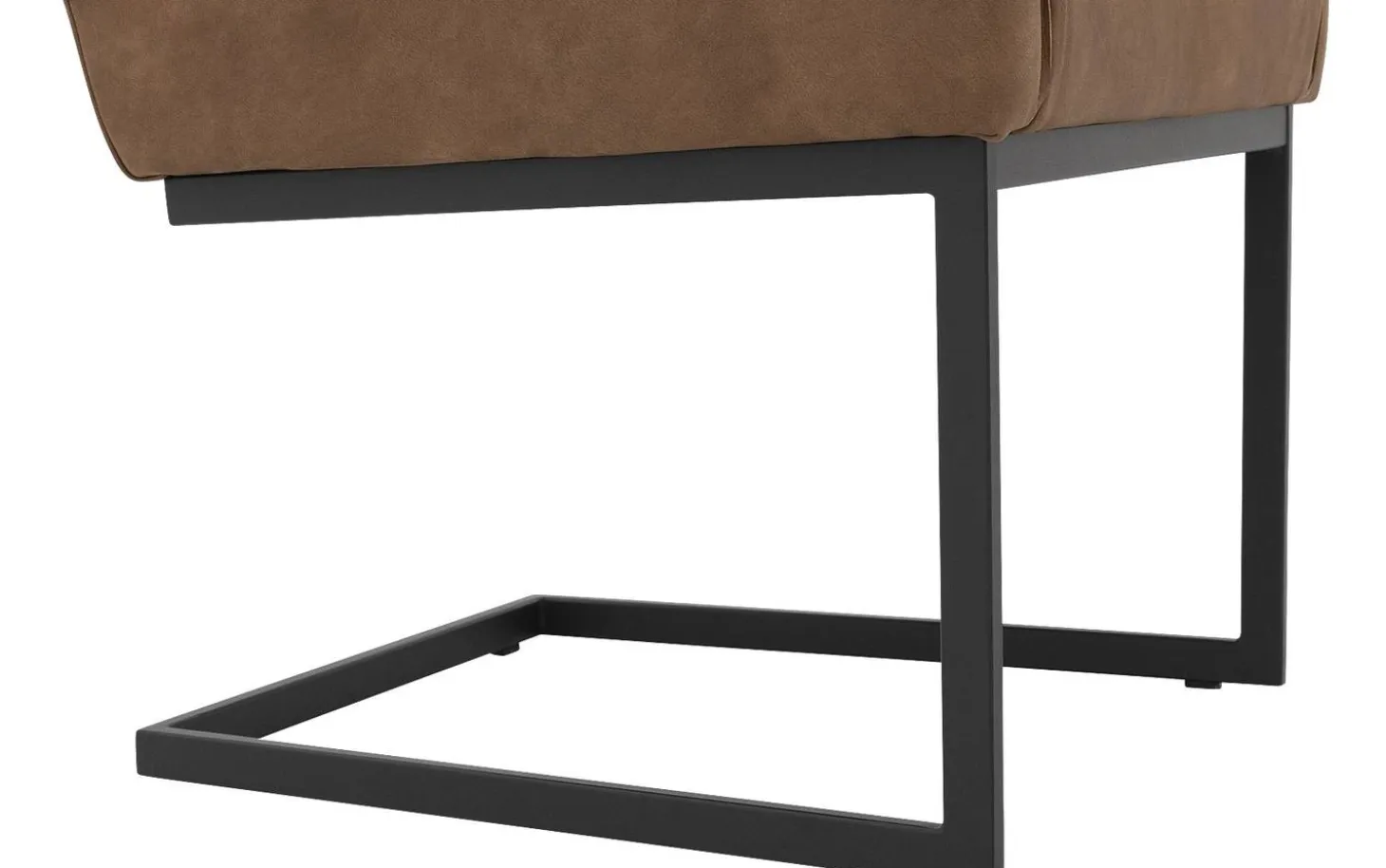 Das anthrazitfarbene Freischwinggestell aus Metall bildet einen starken Kontrast zum warmen braunen Leder. Durch die feste Polsterung hat der Stuhl einen klaren, modernen Look, der perfekt zu einem urbanen industriellen Interieur passt. Die Gleiter unter den Beinen schützen zudem Ihren Boden vor Beschädigungen.
