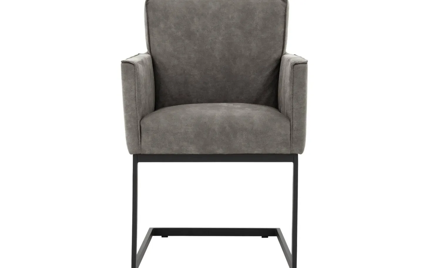 Grauer Esszimmerstuhl Tom mit Armlehne kombiniert rustikalen Komfort mit industriellem Stil. Dieser Esszimmerstuhl aus Microleder passt perfekt in ein urbanes Interieur. Die praktischen Armlehnen bieten zusätzliche Unterstützung während langer Mahlzeiten. Dank des anthrazitfarbenen Freischwinggestells schwingt dieser Stuhl leicht mit Ihren Bewegungen mit – besonders angenehm beim Verweilen nach dem Essen mit Freunden und Familie.