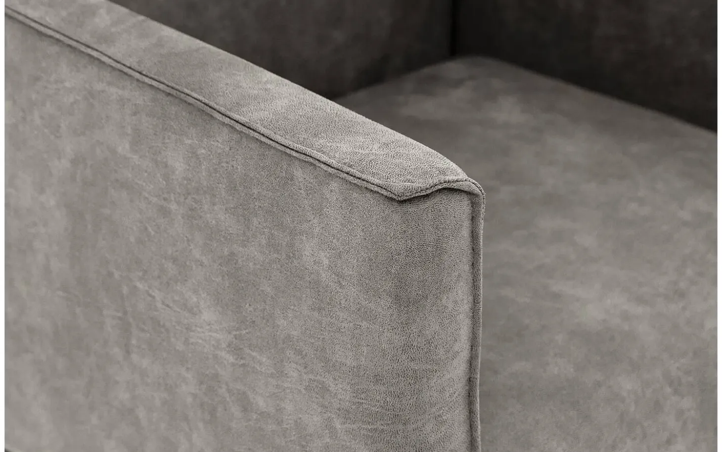 Der Stuhl Tom ist mit hochwertigem Microleder in einem stilvollen grauen Farbton bezogen. Dieses Material kombiniert 70% echtes Leder mit 30% Polyesterstoff, was für eine weiche Haptik und Langlebigkeit sorgt. Die feste Polsterung sorgt für ein klares, modernes Erscheinungsbild, das jahrelang schön bleibt.