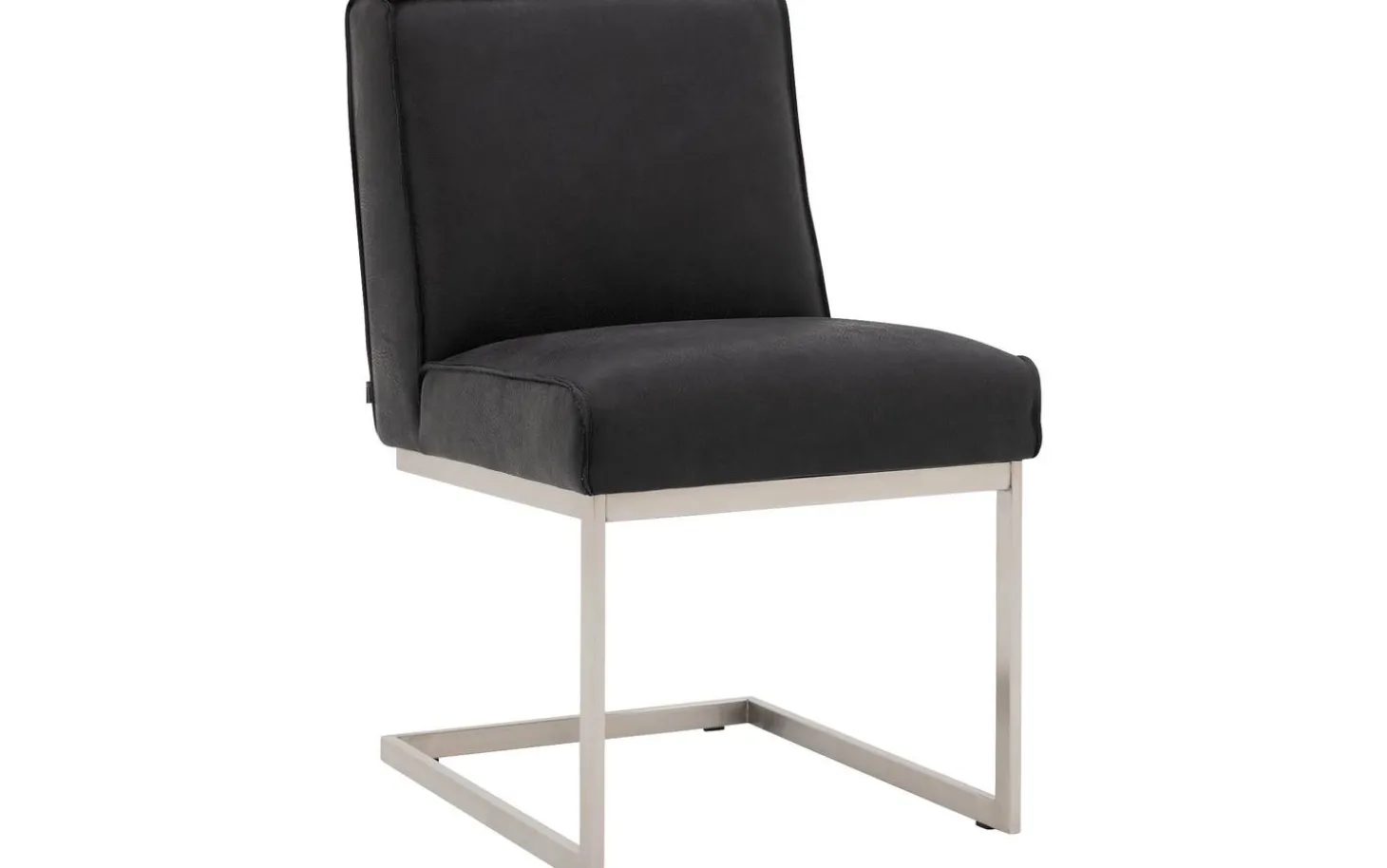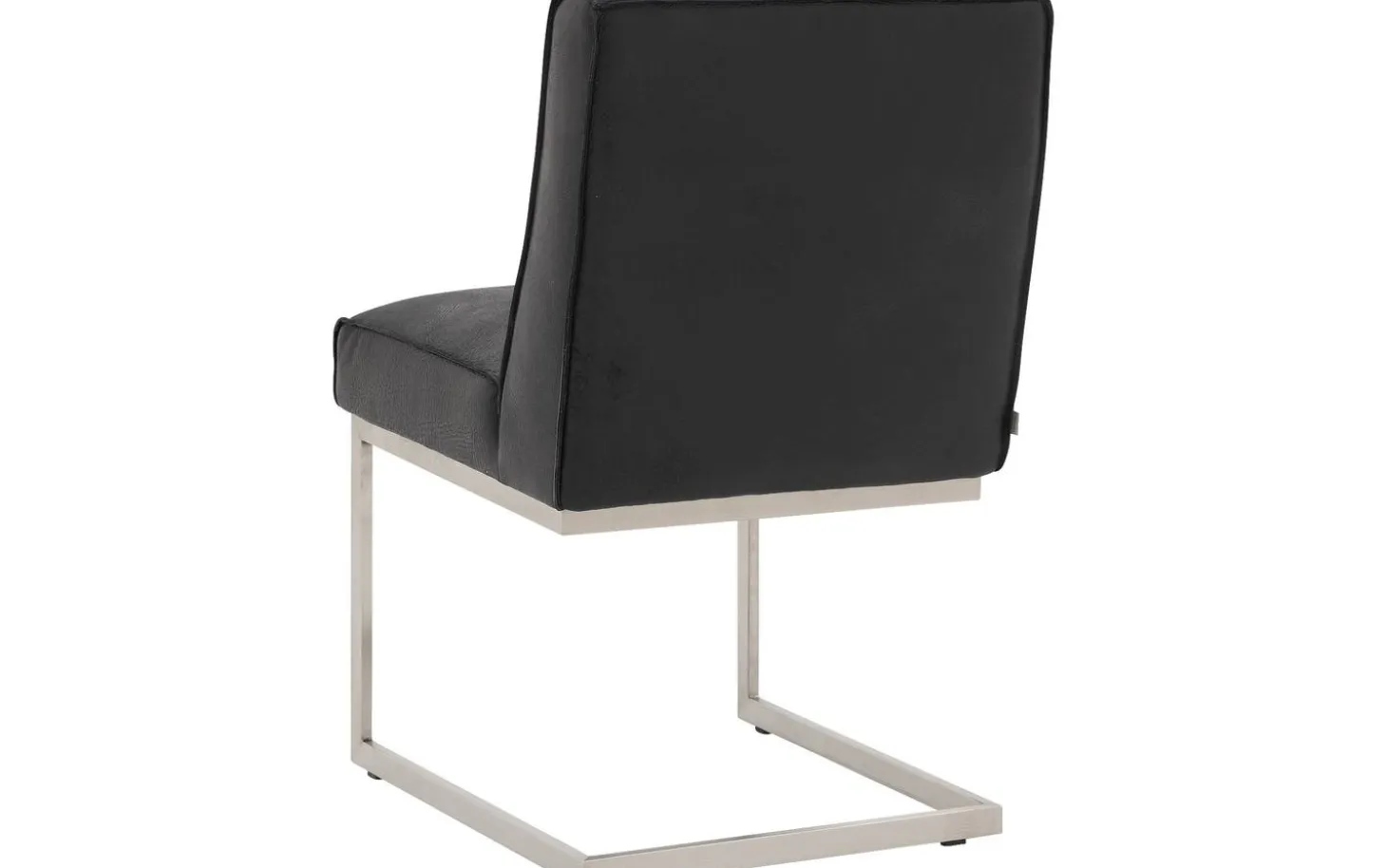 Der schwarze Esszimmerstuhl Tom ohne Armlehne bietet Komfort und Stil an Ihrem Esstisch. Dieser robuste Stuhl passt perfekt zu einem industriellen Interieur dank des Büffelleders mit eleganter Ziernaht. Das Freischwinggestell aus Edelstahl sorgt dafür, dass der Stuhl leicht mit Ihren Bewegungen mitfedert, was besonders angenehm ist während langer Essen oder gemütlicher Drinks mit Freunden und Familie.
