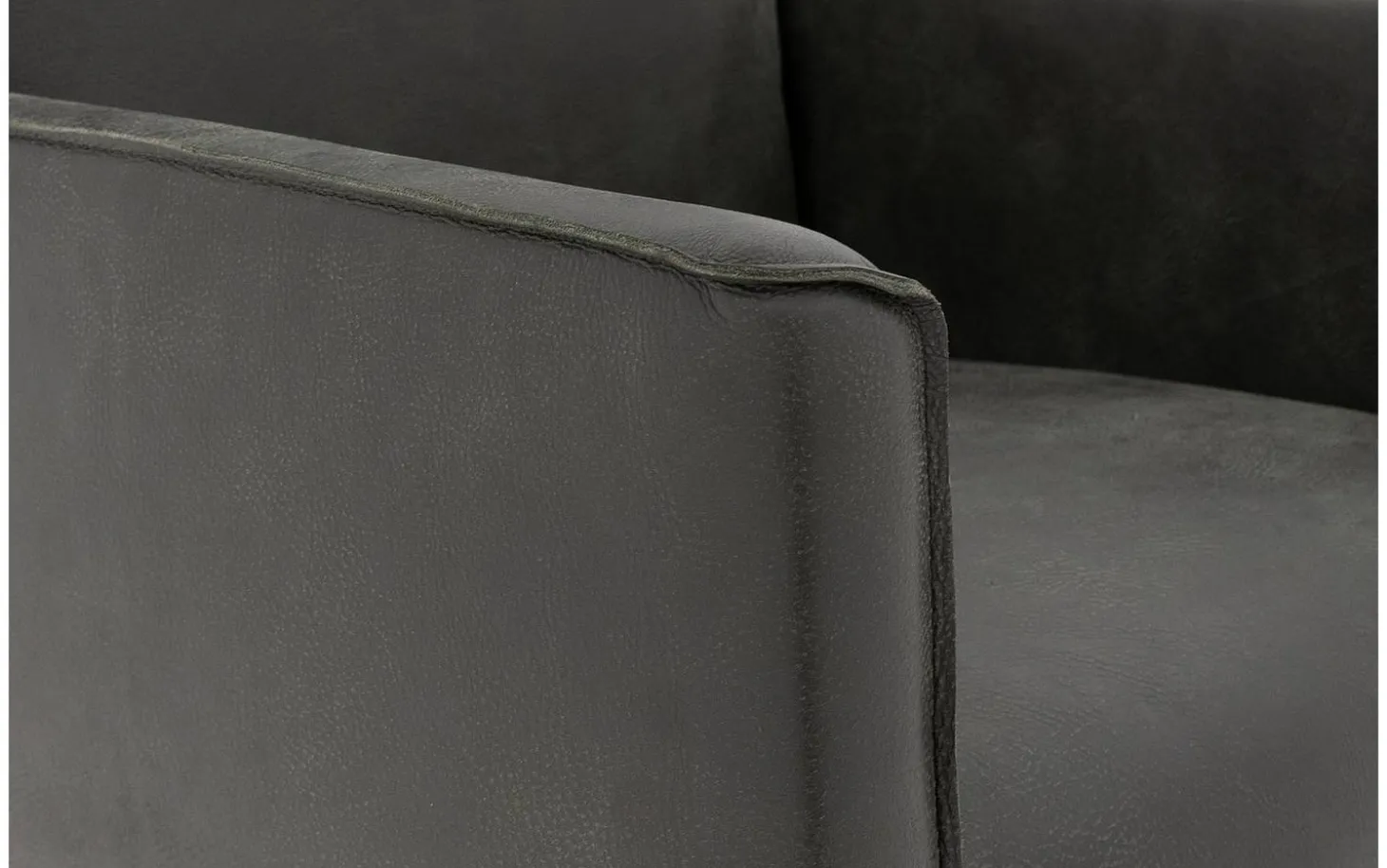 Der grüne Esszimmerstuhl Tom mit Armlehne ist ein robuster Stuhl aus Leder, der perfekt in ein industrielles Interieur passt. Das dunkelgrüne Büffelleder ist fachmännisch mit einer eleganten Kappnaht versehen, die für eine robuste Ausstrahlung sorgt. Der Stuhl hat ein räumliches Erscheinungsbild dank des anthrazitfarbenen Metallrahmens mit Freischwinggestell, wodurch Sie beim Nachsitzen leicht mitfedern – ideal für lange Abende am Esstisch.