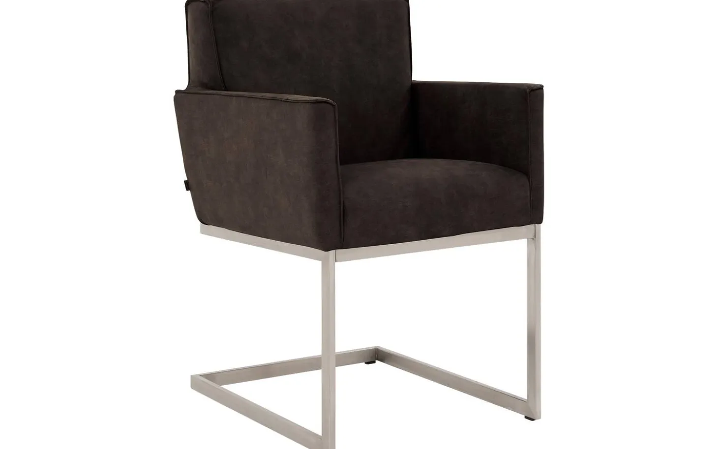 Der braune Esszimmerstuhl Tom mit Armlehne bietet eine robuste industrielle Ausstrahlung für Ihren Essbereich. Dieser Stuhl aus Mikroleder fühlt sich herrlich weich an und ist mit einer eleganten Ziernaht versehen. Das Besondere an Tom ist das Freischwinggestell aus Edelstahl, das leicht mit Ihren Bewegungen mitfedert – besonders angenehm während langer Essen. Perfekt zu kombinieren mit der Esszimmerbank Tom für einen vollständigen und gemütlichen Essbereich mit charakterstarkem Aussehen.