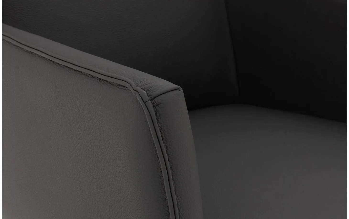 Das dunkelgraue dicke Master-Leder des Esszimmerstuhls Leogang ist durchgefärbt und mit einer schützenden Lackschicht versehen. Diese Schutzschicht bietet zusätzlichen Widerstand gegen äußere Einflüsse wie Sonnenlicht, Schmutz, Feuchtigkeit und Essensreste. Das schwarz pulverbeschichtete Gestell bildet einen schönen Kontrast zur grauen Polsterung.