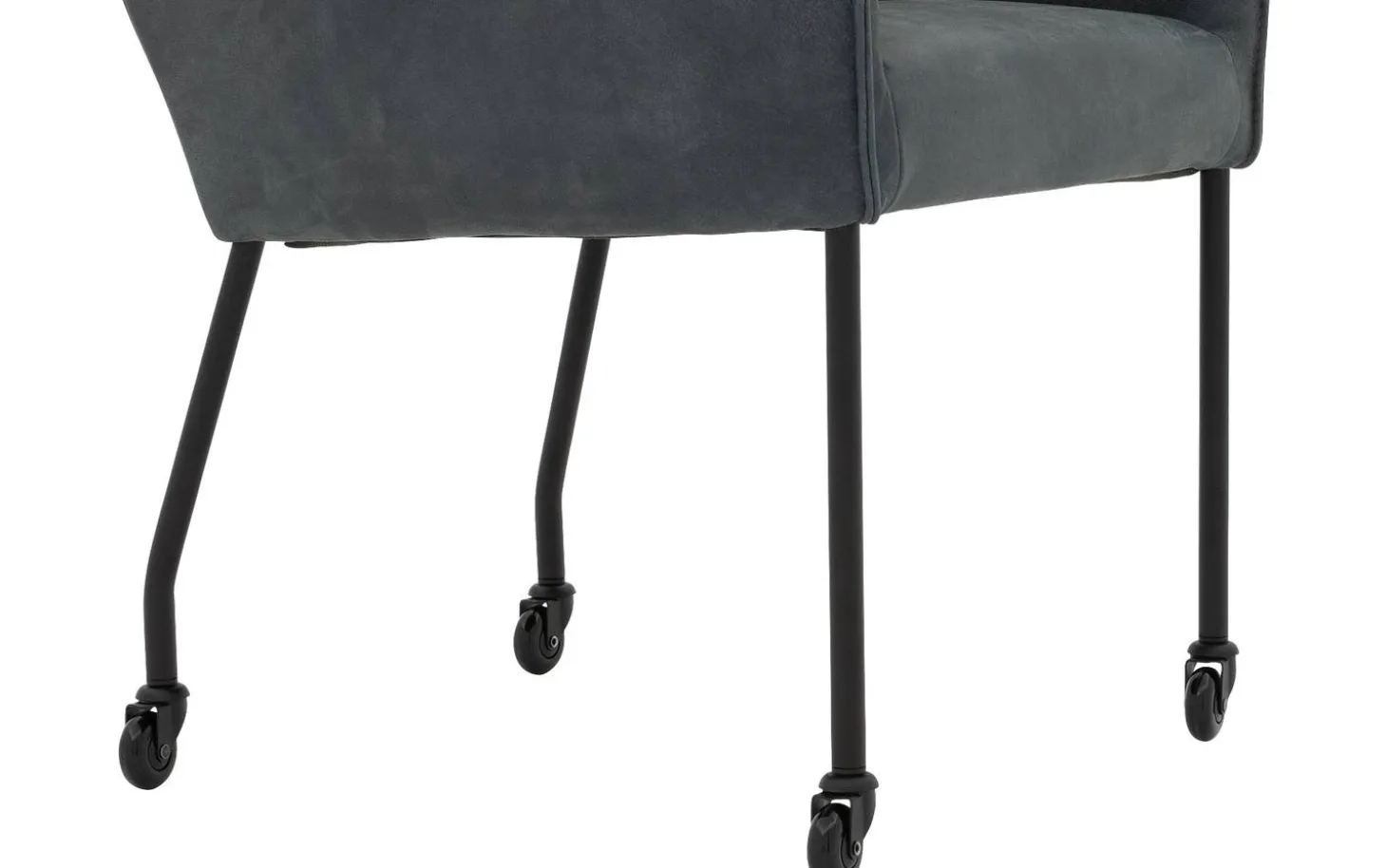 Der blaue Esszimmerstuhl Leogang mit Armlehne bringt Eleganz an Ihren Esstisch. Dieser Lederstuhl erinnert an einen klassischen Ohrensessel, jedoch in einem erfrischend modernen Design. Mit seiner schlanken Form und dem luftigen Untergestell mit schwarzen Rollen nehmen Sie mühelos am Tisch Platz oder verlassen ihn wieder. Die Buffalo-Lederbezüge verleihen dem Leogang eine luxuriöse, wildlederähnliche Ausstrahlung, die Ihr Interieur sofort aufwertet.