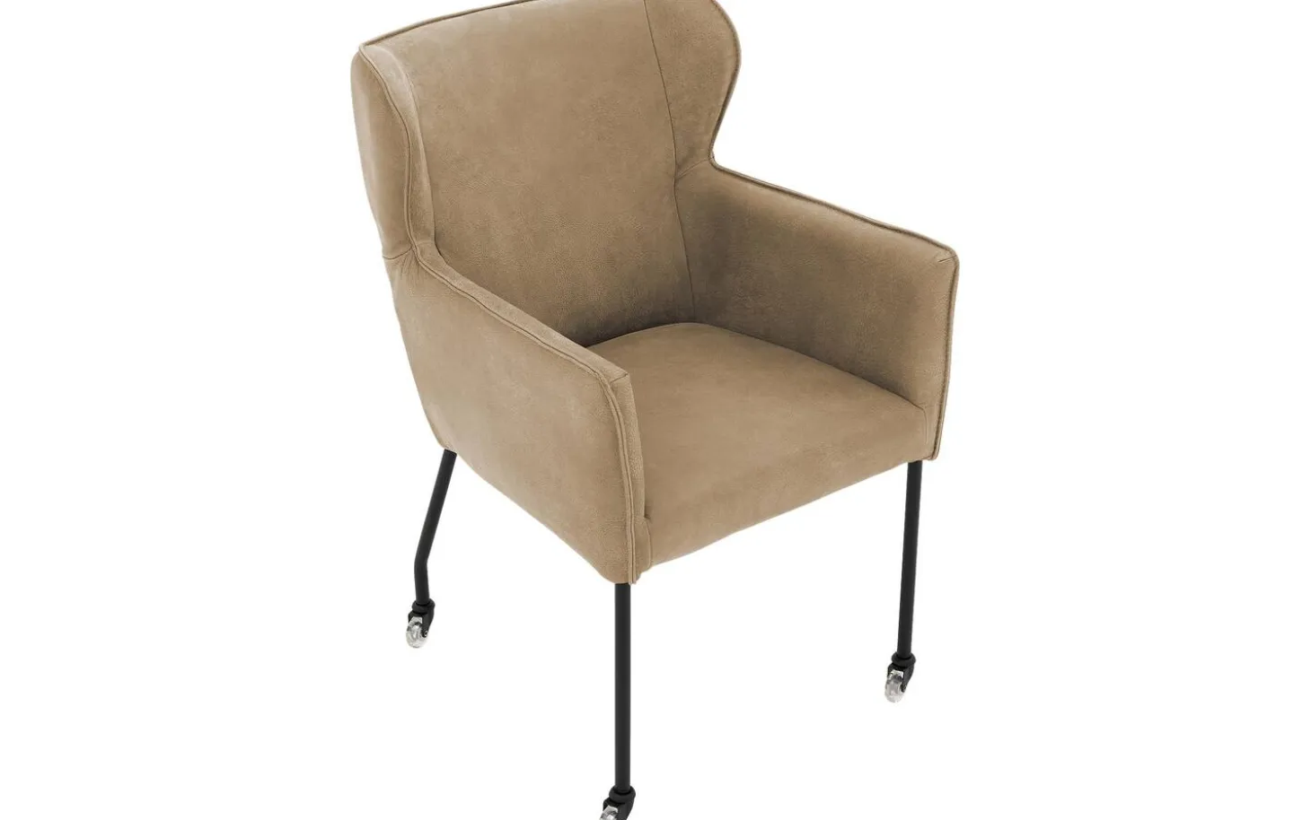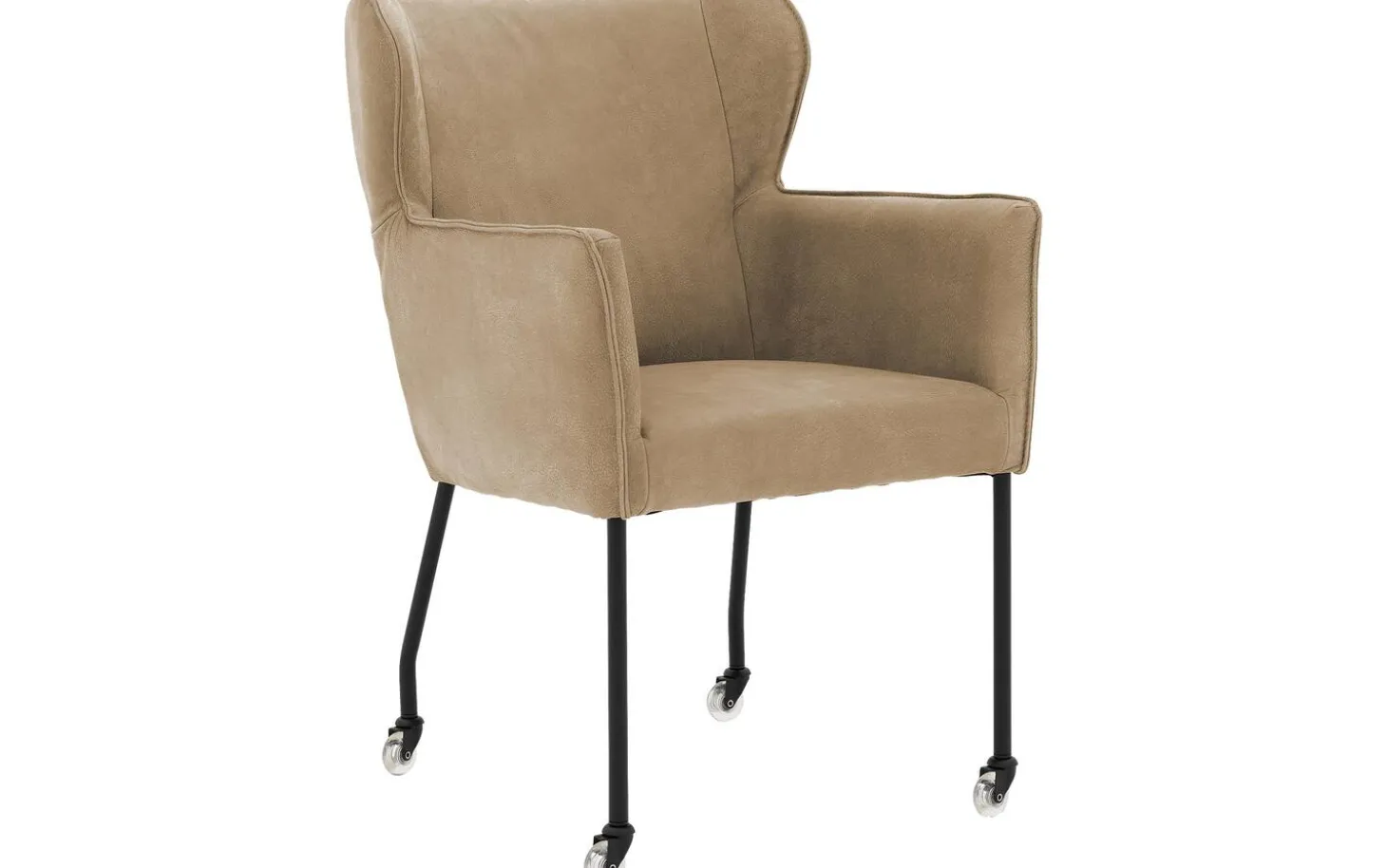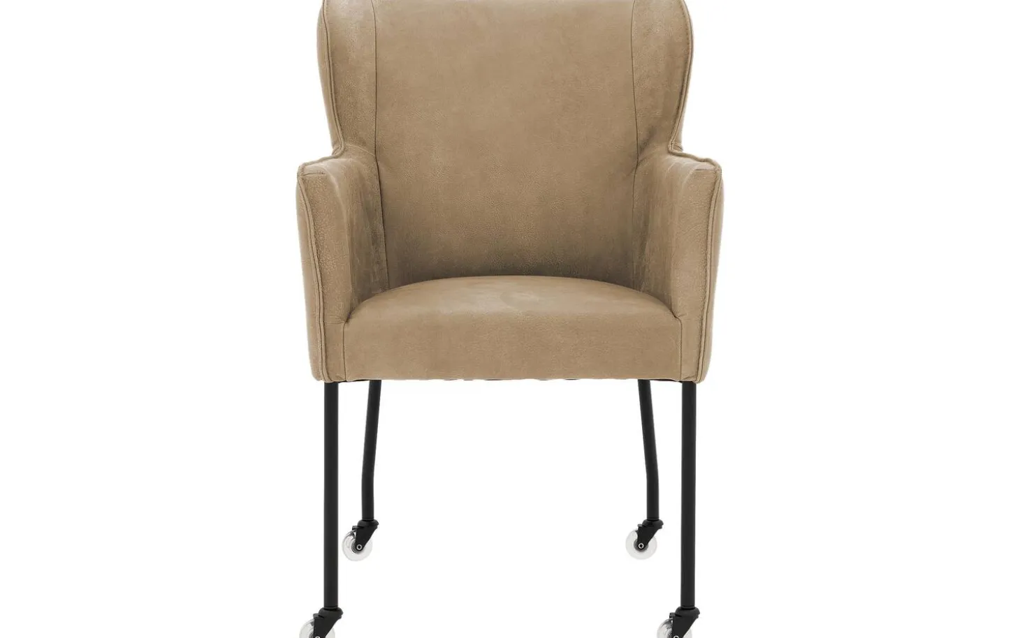 Der taupefarbene Esszimmerstuhl Leogang mit Armlehne kombiniert elegantes Design mit Komfort. Dieser Stuhl aus Leder erinnert an einen klassischen Ohrensessel, allerdings in einer modernen Ausführung. Der Bezug aus Buffalo-Leder in Taupe verleiht dem Leogang eine luxuriöse und warme Ausstrahlung, während das schlanke Gestell für einen luftigen Look sorgt. Mit den praktischen Rollen können Sie leicht an den Tisch heran- und wieder wegfahren – perfekt für lange Essen mit Familie und Freunden.