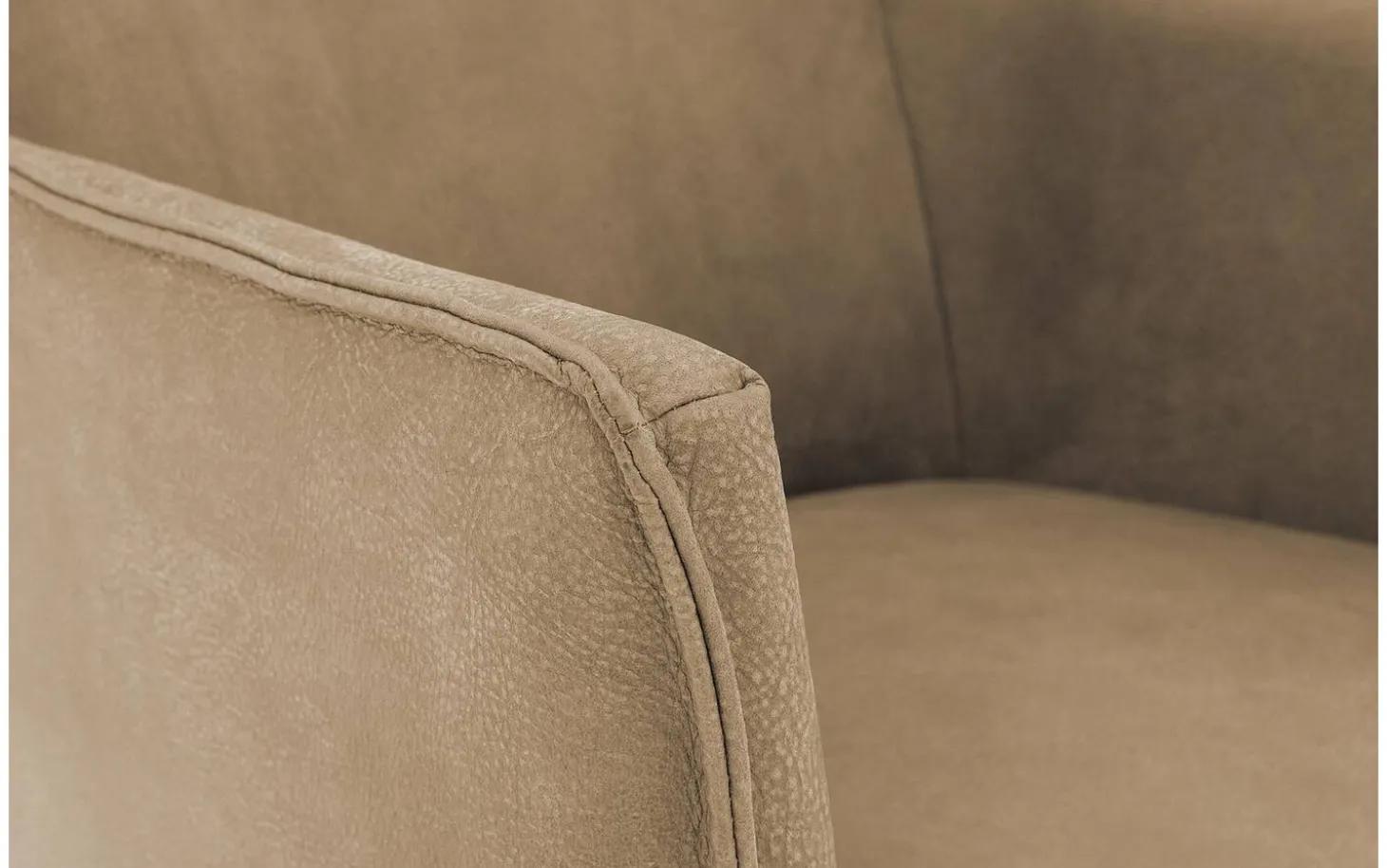 Das wunderschöne Buffalo-Leder verleiht diesem Stuhl eine weiche, warme Ausstrahlung und einen robusten Charakter. Dieses fein aufgeraute Narbenleder hat eine wildlederähnliche Textur und behält seine natürliche Narbung für einen authentischen Look. Das schwarze Gestell mit Pulverbeschichtung bildet einen schönen Kontrast zum warmen Taupe des Lederbezugs.