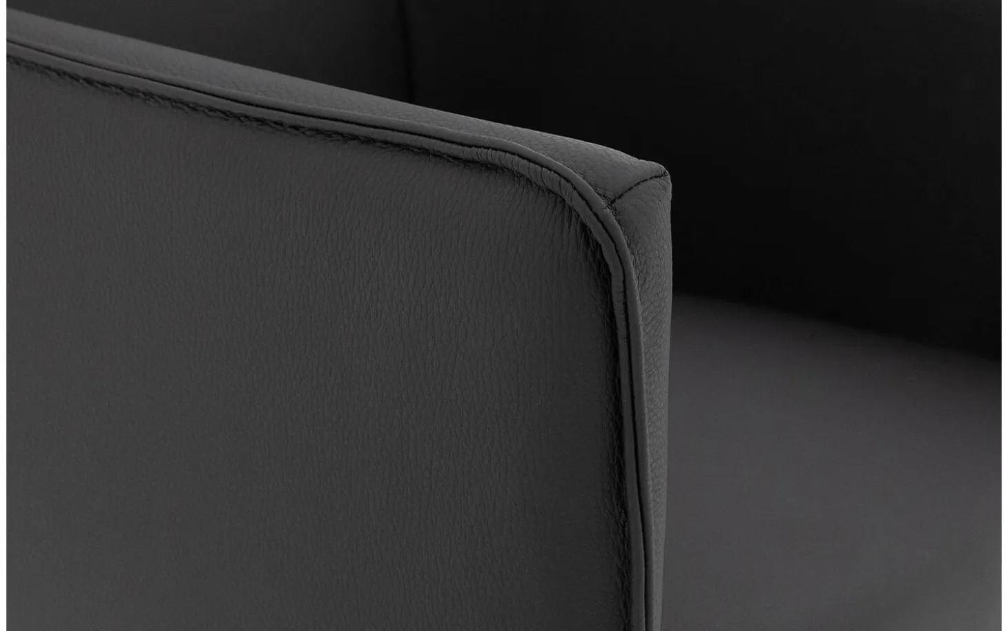 Der schwarze Esszimmerstuhl aus Leder Leogang mit Armlehne kombiniert eine schlanke Silhouette mit elegantem Komfort. Dieser stilvolle Stuhl erinnert an einen klassischen Ohrensessel in modernem Gewand. Dank der luxuriösen Polsterung aus dickem Masterleder erhält Ihr Esszimmer sofort eine elegante Ausstrahlung. Das schlanke Untergestell mit praktischen schwarzen Rollen sorgt dafür, dass Sie mühelos an jeden Esstisch heranrücken können – ideal für lange Essen mit Freunden oder Familie.