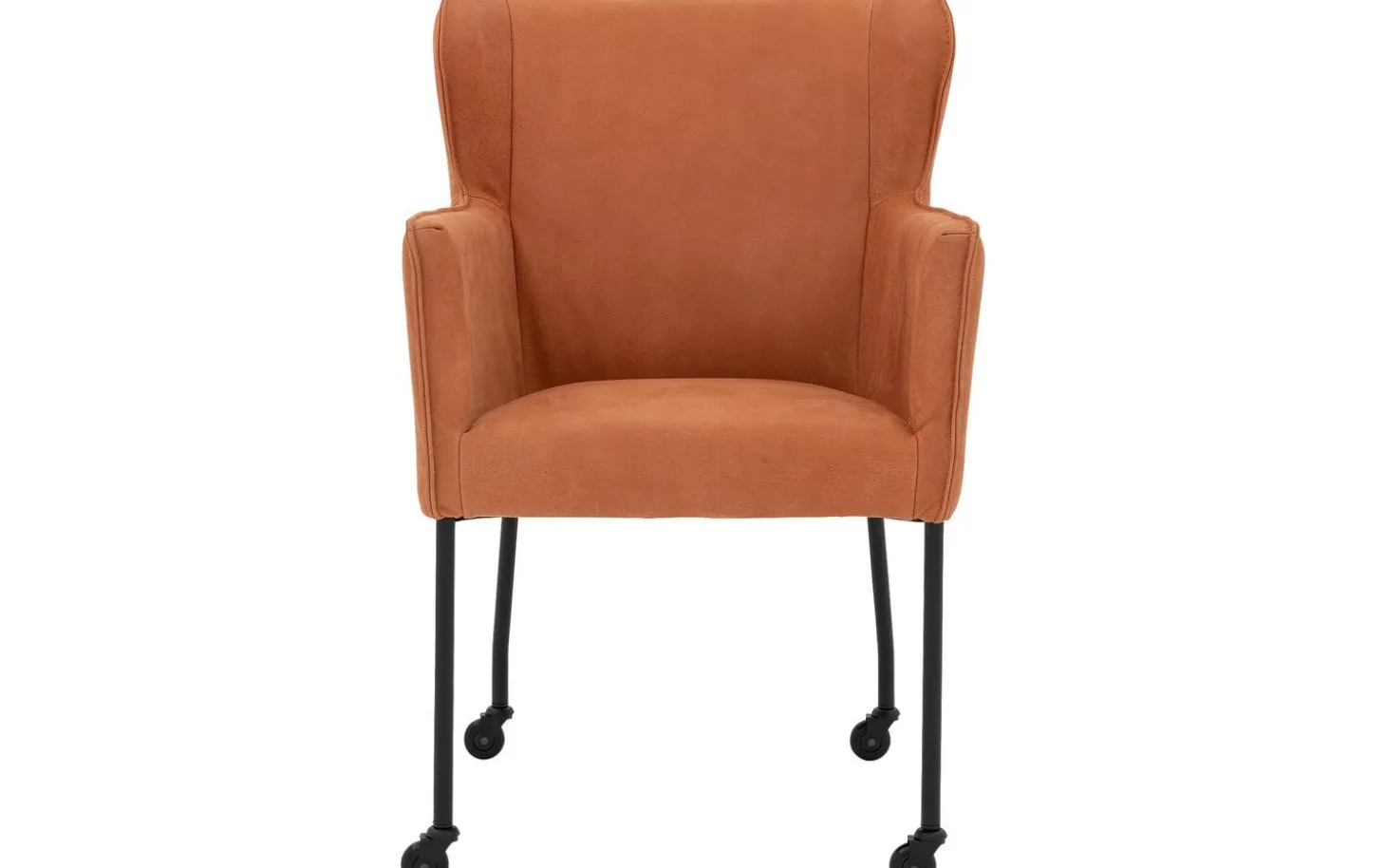 Der braune Esszimmerstuhl Leogang mit Armlehne verbindet elegantes klassisches Design mit modernem Komfort. Dieser Stuhl mit schlanken Linien erinnert an einen Ohrensessel, jedoch in einer zeitgemäßen Version für Ihren Esstisch. Das Buffalo-Leder verleiht dem Stuhl eine luxuriöse Ausstrahlung mit einer warmen rostbraunen Farbe und einer weich anfühlenden, wildlederähnlichen Textur. Dank der schwarzen Rollen können Sie sich während des Essens leicht an den Tisch setzen und wieder aufstehen.