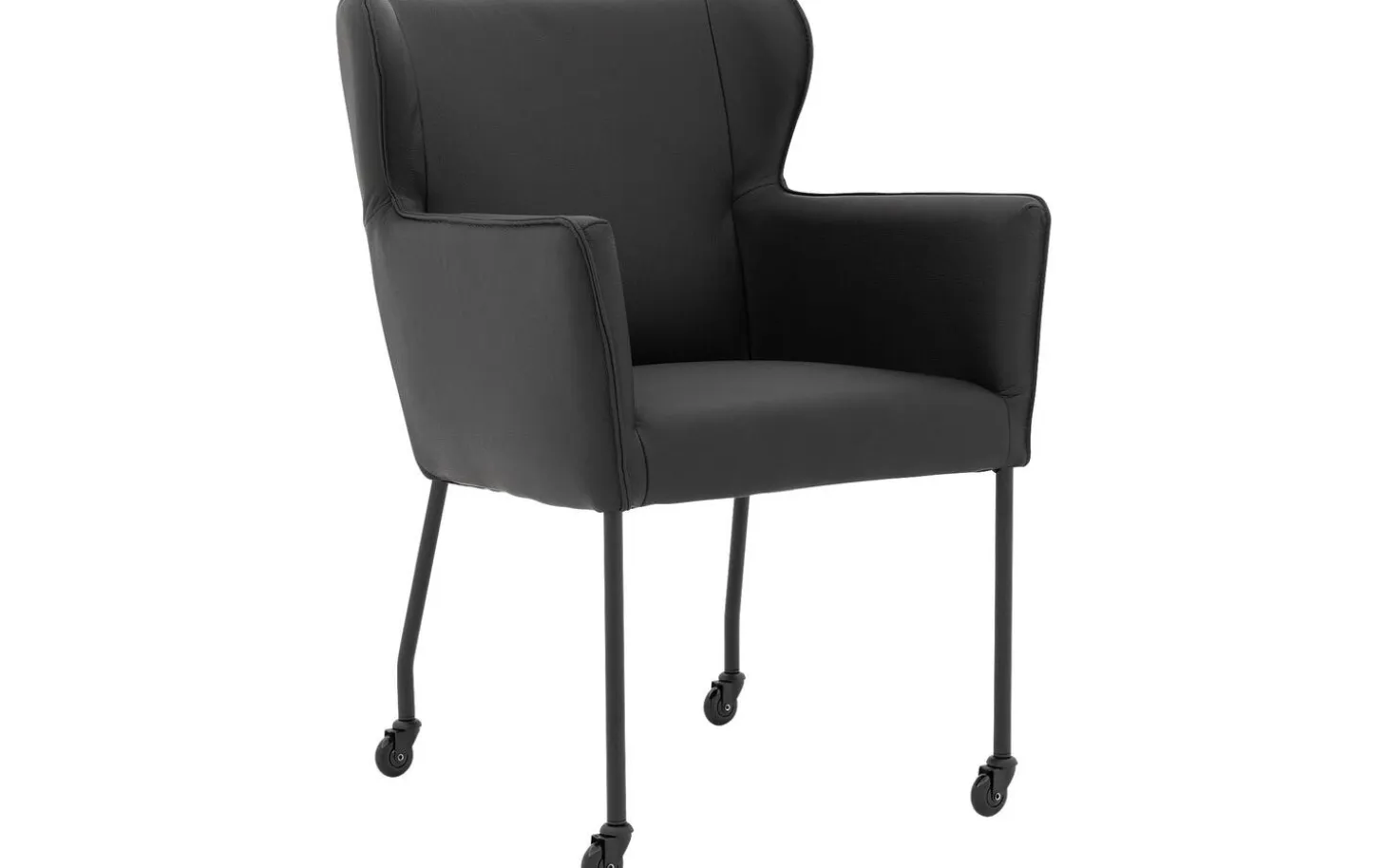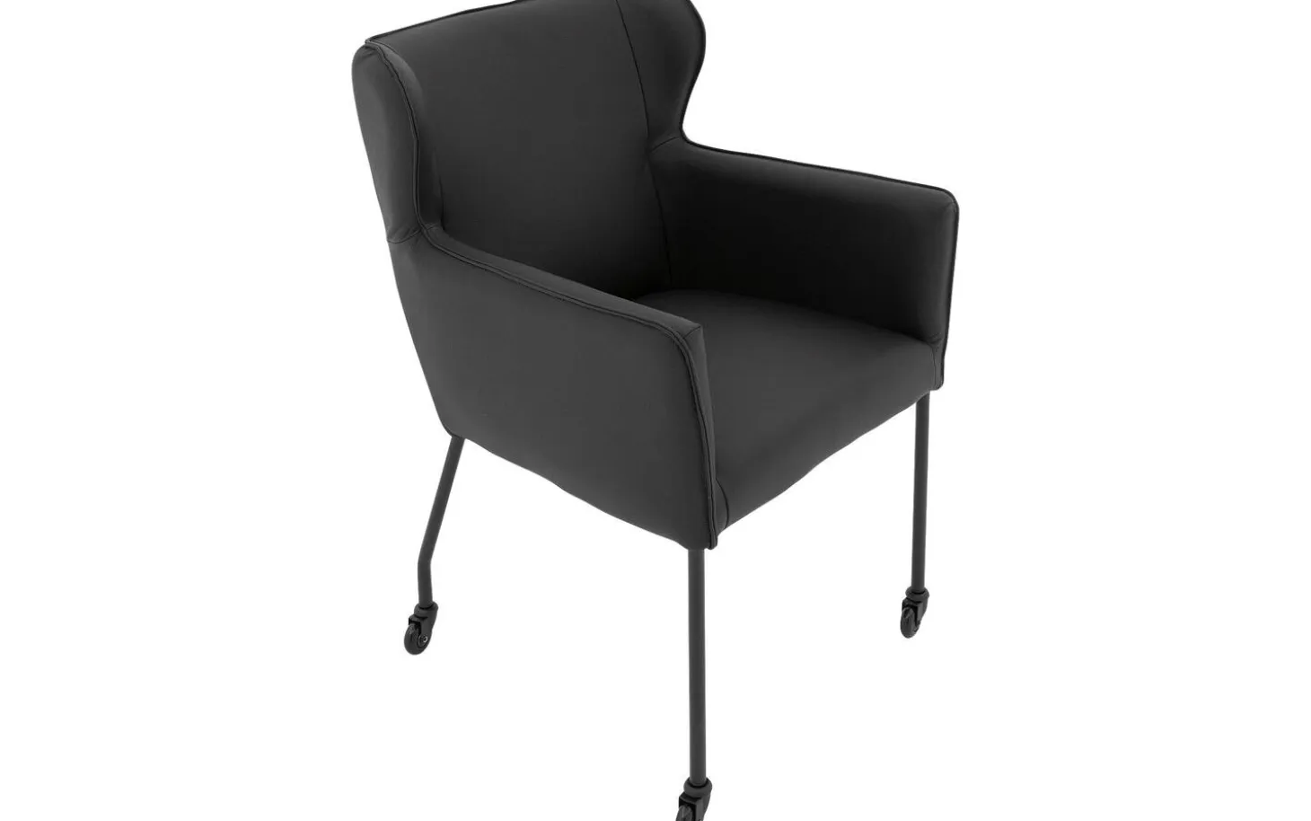 Der schwarze Esszimmerstuhl Leogang mit Armlehne verbindet Eleganz mit praktischem Komfort. Dieser schlanke Stuhl erinnert an einen klassischen Ohrensessel im modernen Gewand. Das schwarze dicke Master-Leder verleiht einen luxuriösen Ausdruck, während das schlanke Untergestell mit Rollen für einen luftigen Look und leichtes Heranrücken sorgt. Genießen Sie lange Abendessen auf diesem stilvollen Esszimmerstuhl, der sowohl Ihre Augen als auch Ihren Rücken erfreut.