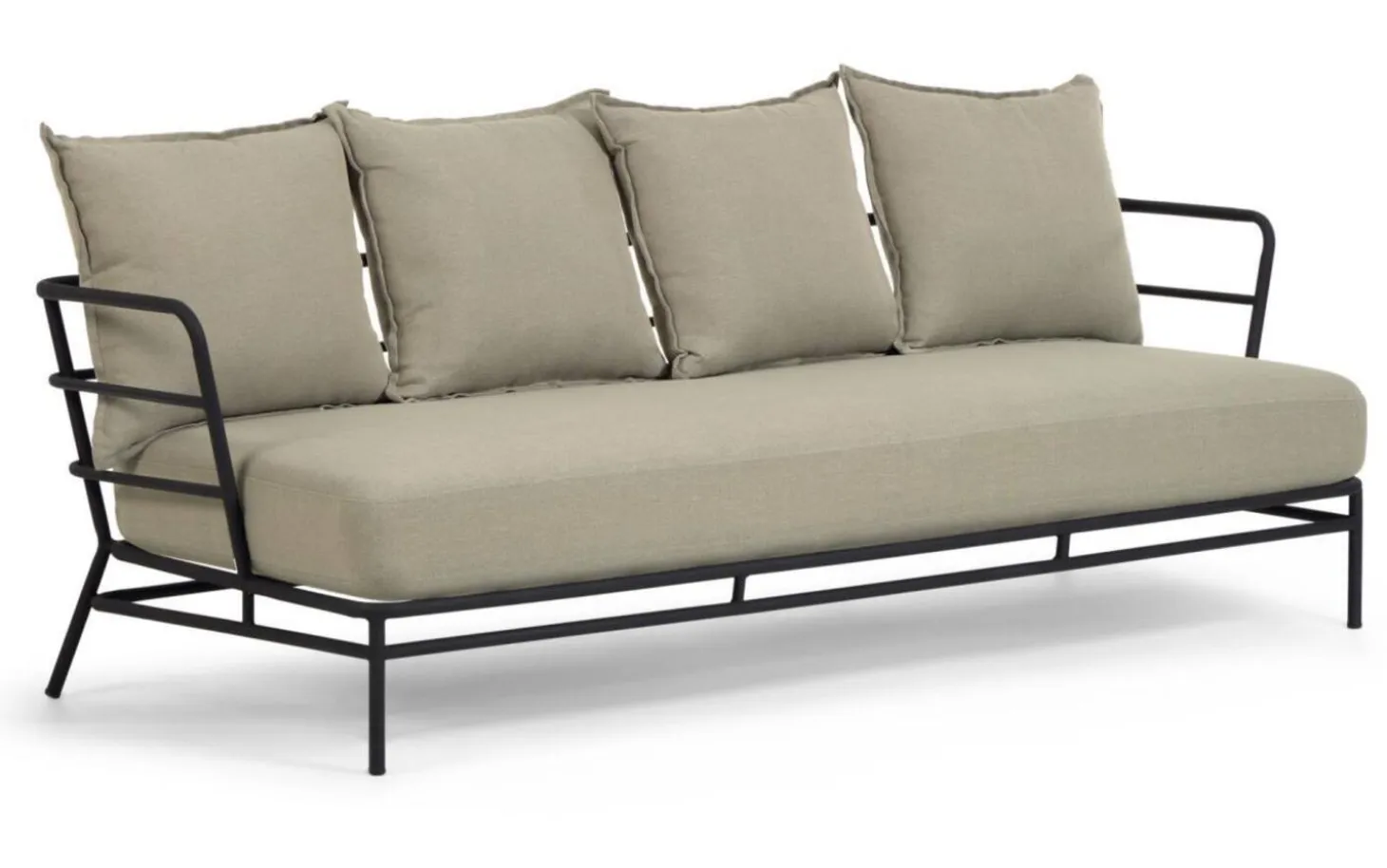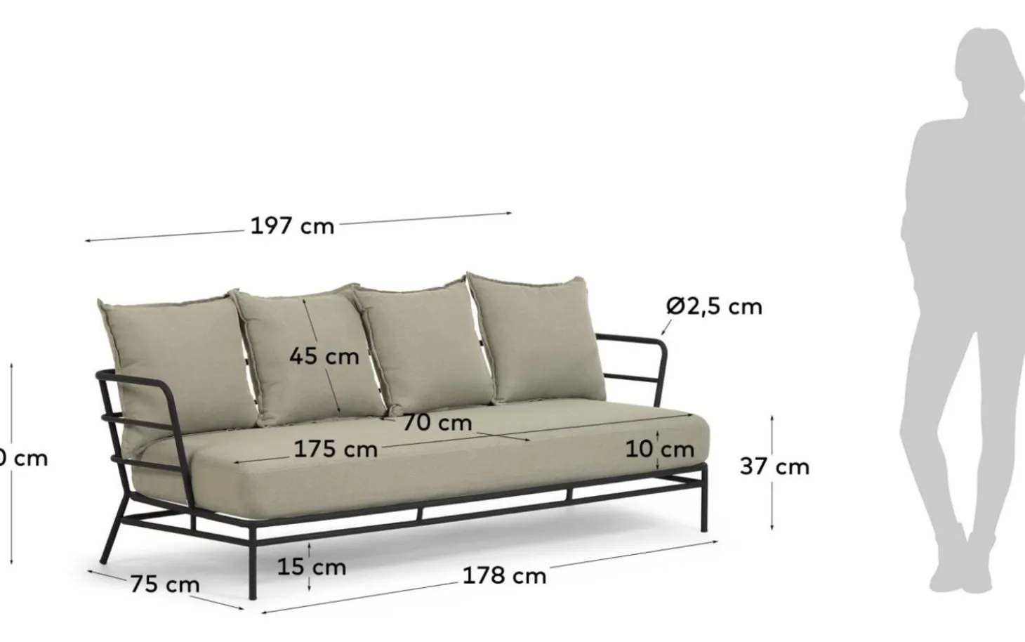 Graue Loungebank Mareluz bringt Luxus und Komfort in Ihren Garten oder auf Ihre Terrasse. Dieses stilvolle Außensofa mit einer Breite von 197 cm verbindet ein schlichtes Design mit herrlichem Komfort. Das schwarze Stahlgestell verleiht der Bank eine leichte, räumliche Ausstrahlung, während der graue Stoffbezug für einen zeitlosen Look sorgt. Perfekt für entspannte Momente im Freien.