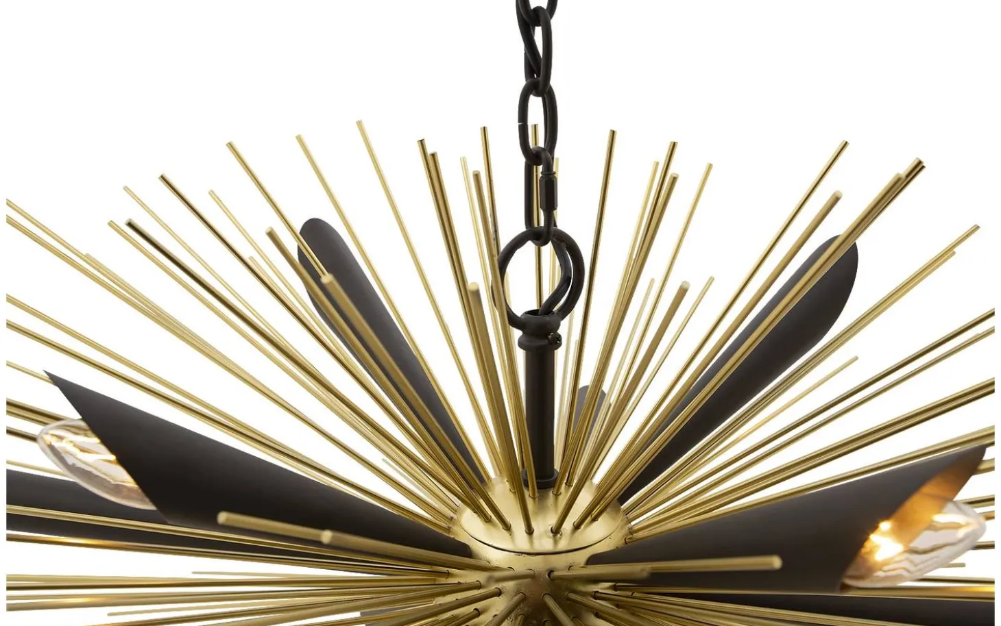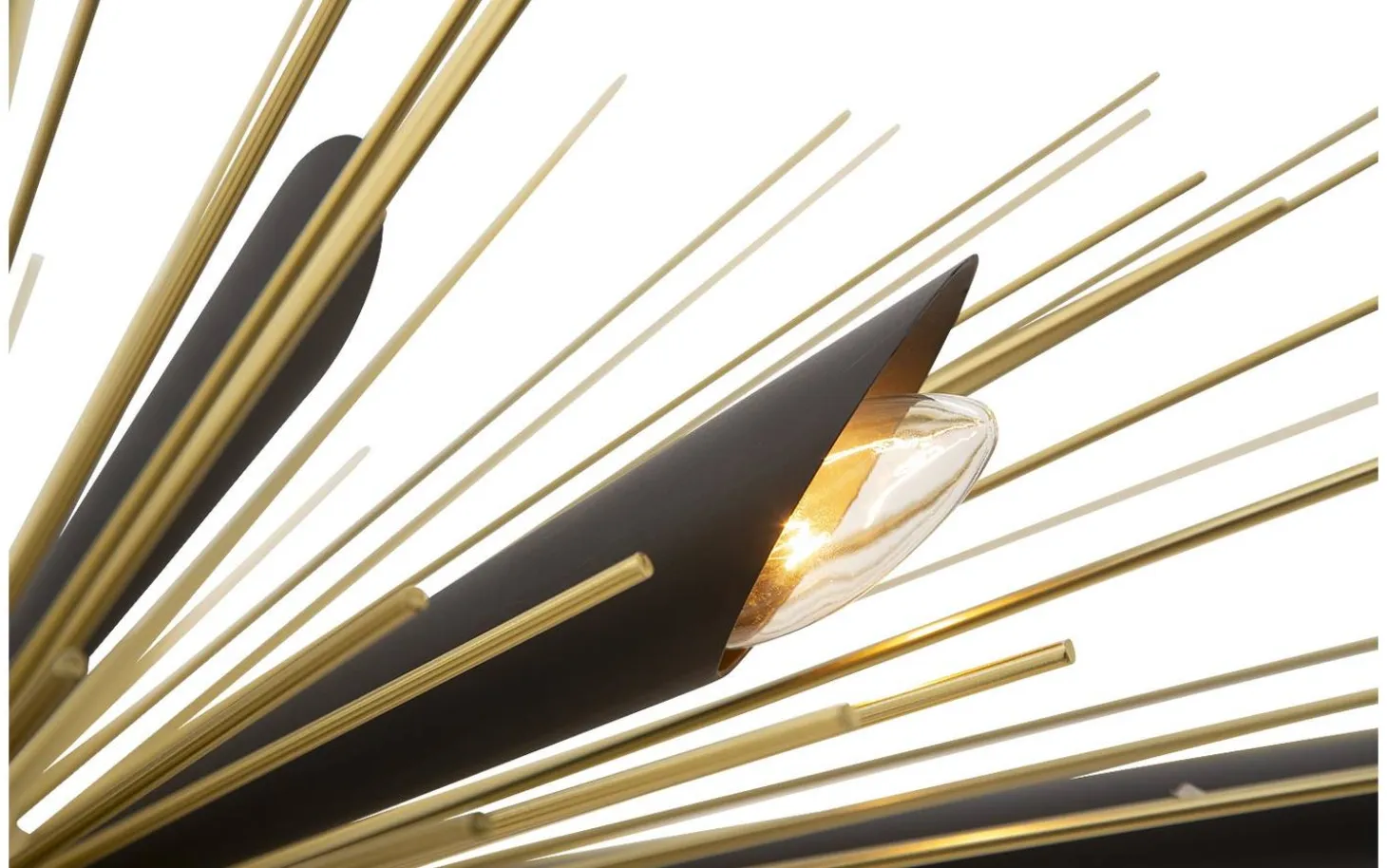 Die Hängeleuchte Cadenza ist ein echter Blickfang für die Decke. Bringen Sie sie in Position und bewundern Sie in Ihrem Wohnzimmer jeden Abend ein Feuerwerk. Durch die aufregende Farbkombination aus Schwarz und Gold wirkt die Beleuchtung besonders warm und stimmungsvoll.