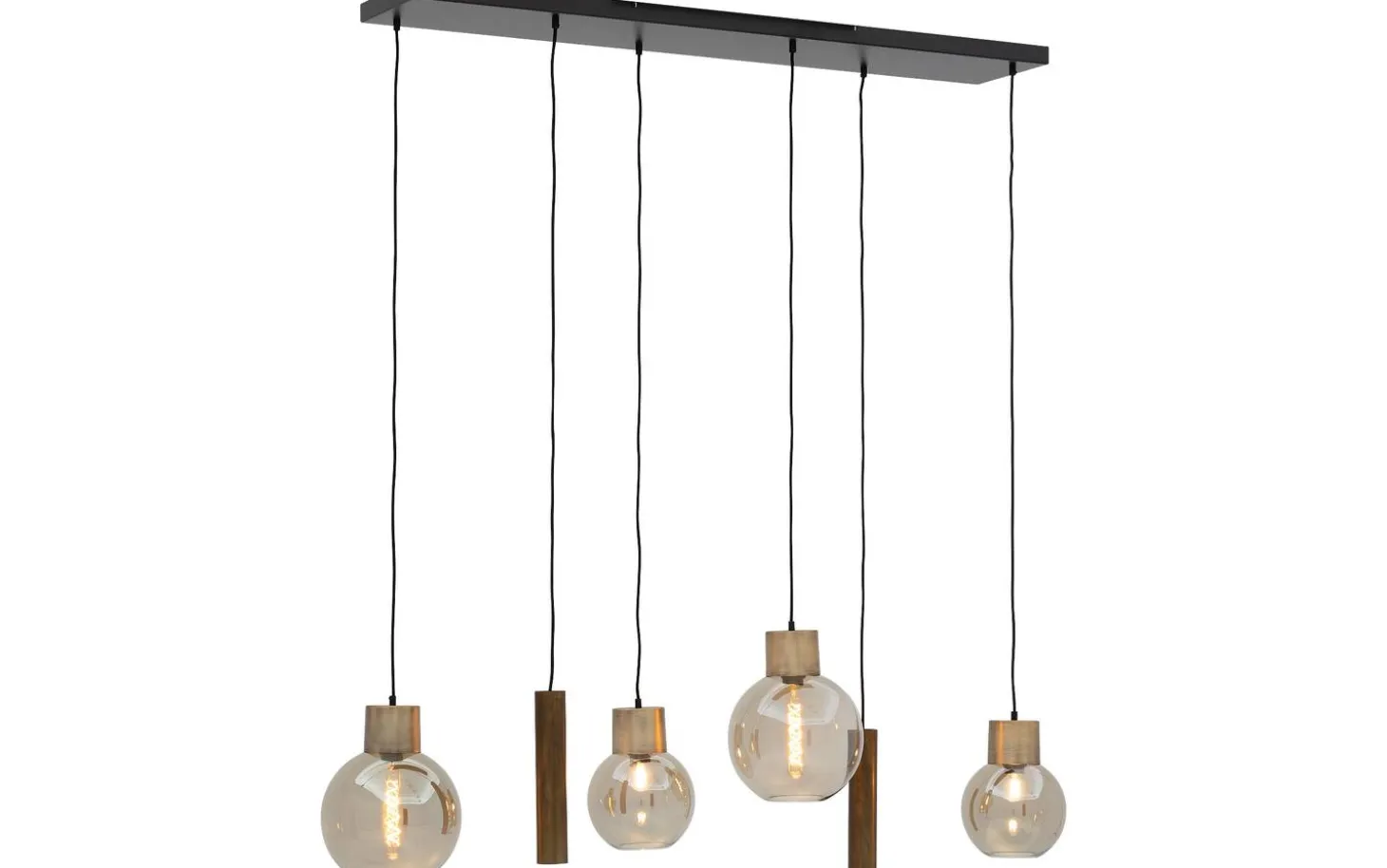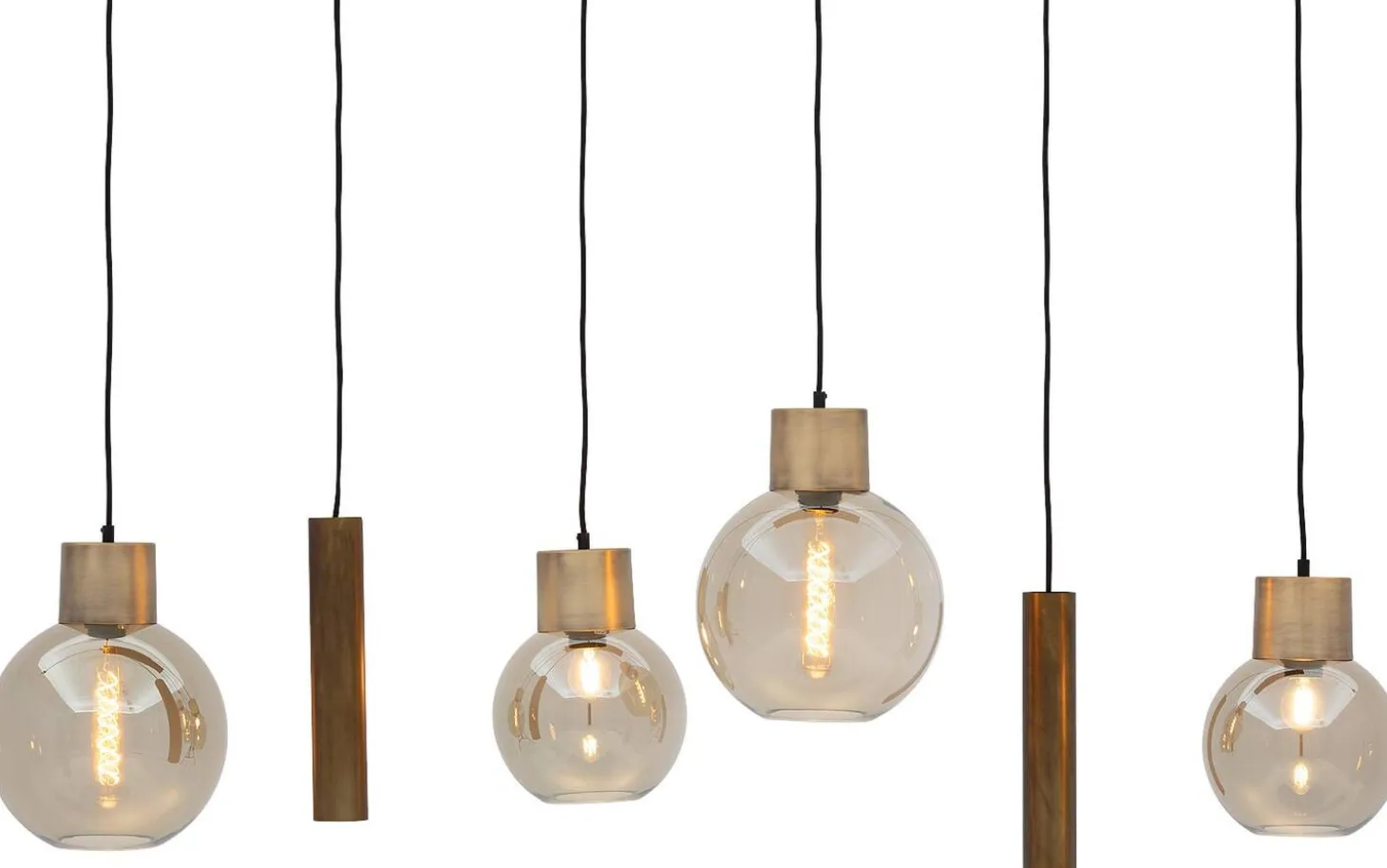 Meet hanglamp Aurora! Voeg een vleugje stijl en sfeer toe aan jouw woon- of eetkamer. Deze hanglamp geeft een chique touch aan je interieur door de combinatie van geborsteld messing en de glazen bollen. Met vijf lichtpunten brengt Aurora niet alleen voldoende licht, maar creëert ook een warme en uitnodigende ambiance voor gezellige diners en kostbare momenten met dierbaren.