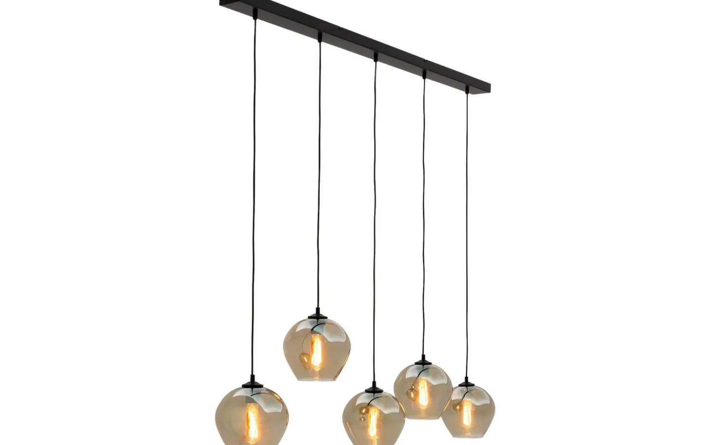 Die Hängeleuchte Devant wird der neue Blickfang in Ihrer Essecke! Die Leuchte aus Rauchglas bringt Wärme in Ihr Esszimmer, und durch die fünf Lichtelemente, die rundherum Licht spenden, ist am ganzen Tisch genügend Licht vorhanden.