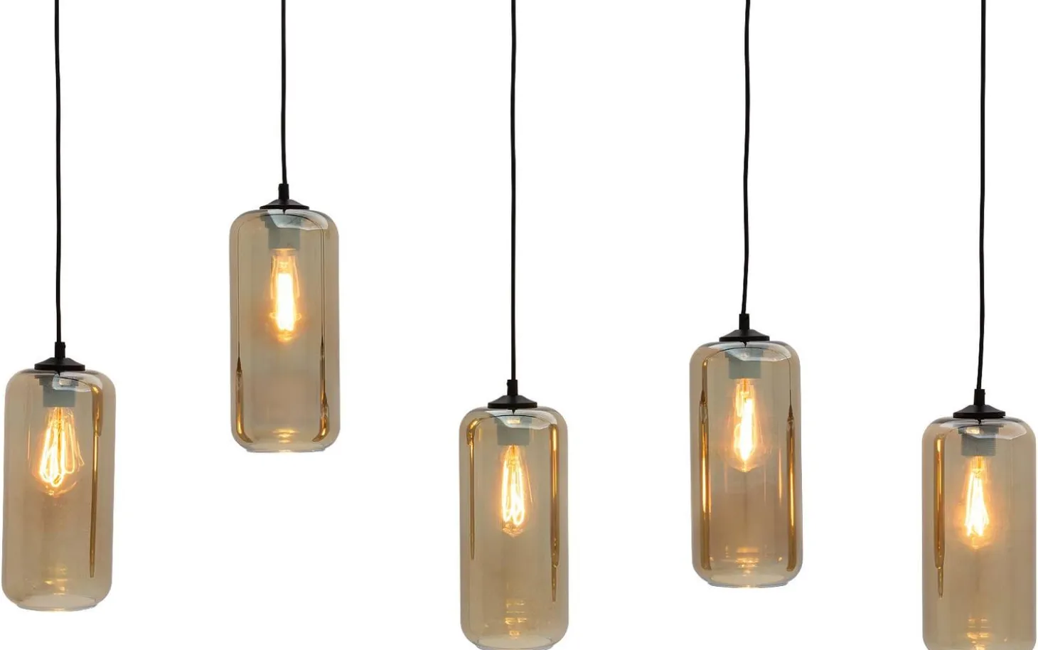 Die Hängeleuchte Devant wird der neue Blickfang in Ihrer Essecke! Die Leuchte aus Rauchglas bringt Wärme in Ihr Esszimmer, und durch die fünf Lichtelemente, die rundherum Licht spenden, ist am ganzen Tisch genügend Licht vorhanden.