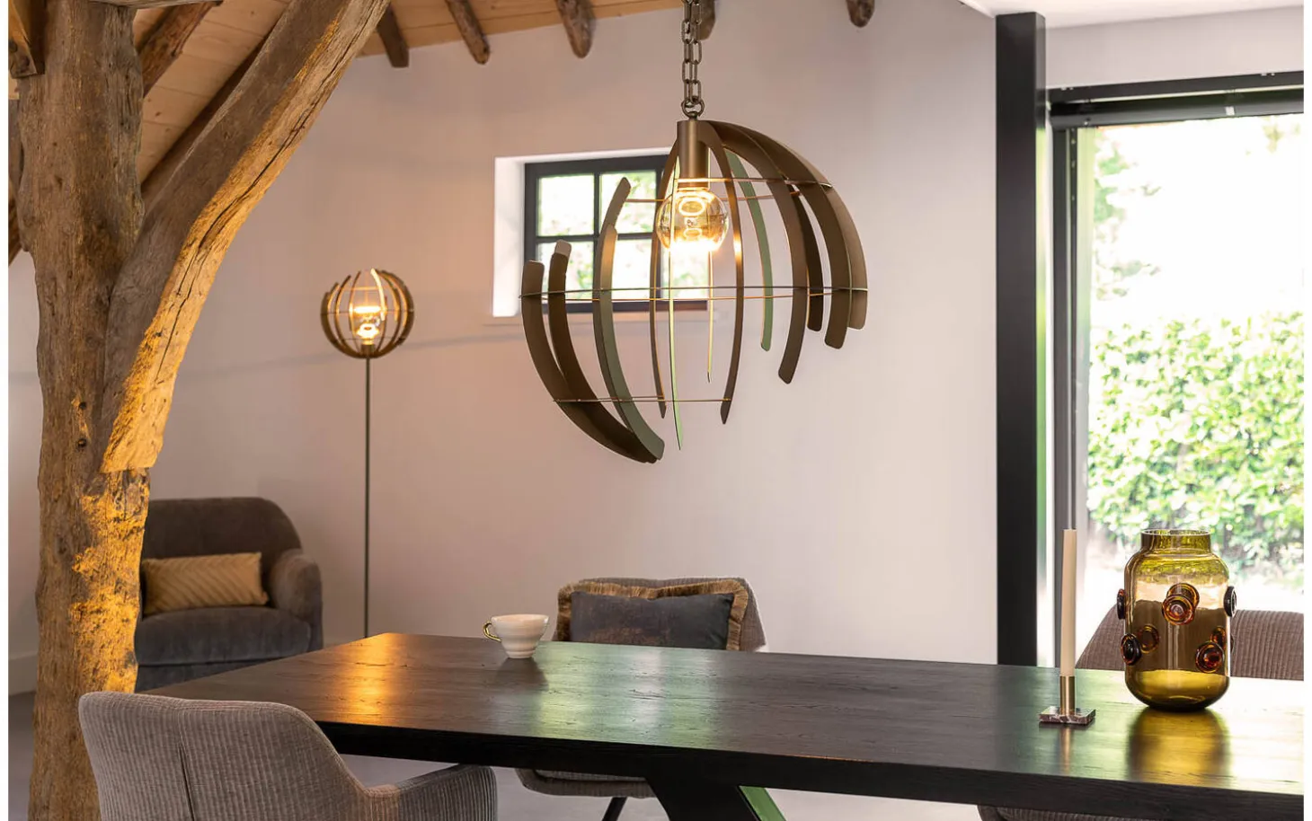 Die Hängeleuchte Vinnie wird der neue Blickfang in Ihrem Interieur. Diese ansprechende Hängeleuchte hat ein einzigartiges Design mit offenem Charakter. Durch die ungewöhnliche Gestaltung präsentiert sich Vinnie von jeder Seite anders. Das gebürstete Metall und die Farbgebung von altem Messing verleihen Vinnie eine industrielle Optik. Gleichzeitig bringt diese Kombination Wärme in Ihr Interieur. Dank des runden Lichtscheins genießen Sie überall Licht in Ihrem Ess- oder Schlafzimmer.