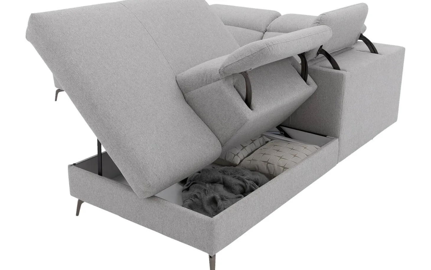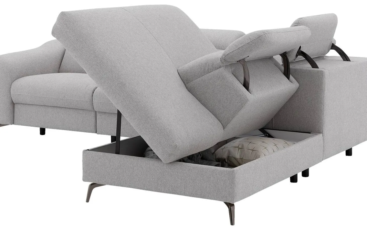 Daarnaast is de bank erg praktisch. Onder het ligelement bevindt zich een opbergruimte, waar je bijvoorbeeld plaids, kussentjes of magazines kunt opbergen. Zo heb je alles binnen handbereik en is het gemakkelijk uit het zicht.