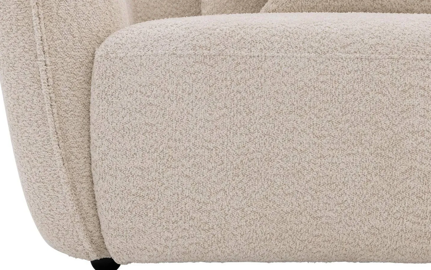 De zachte bouclé stof in crèmewit geeft hoekbank Fay een warme en landelijke uitstraling. De ronde vormgeving maakt deze bank bijzonder en zorgt voor een speels effect in je woonkamer. De kunststof poten in zwart vormen een mooi contrast met de lichte bekleding.