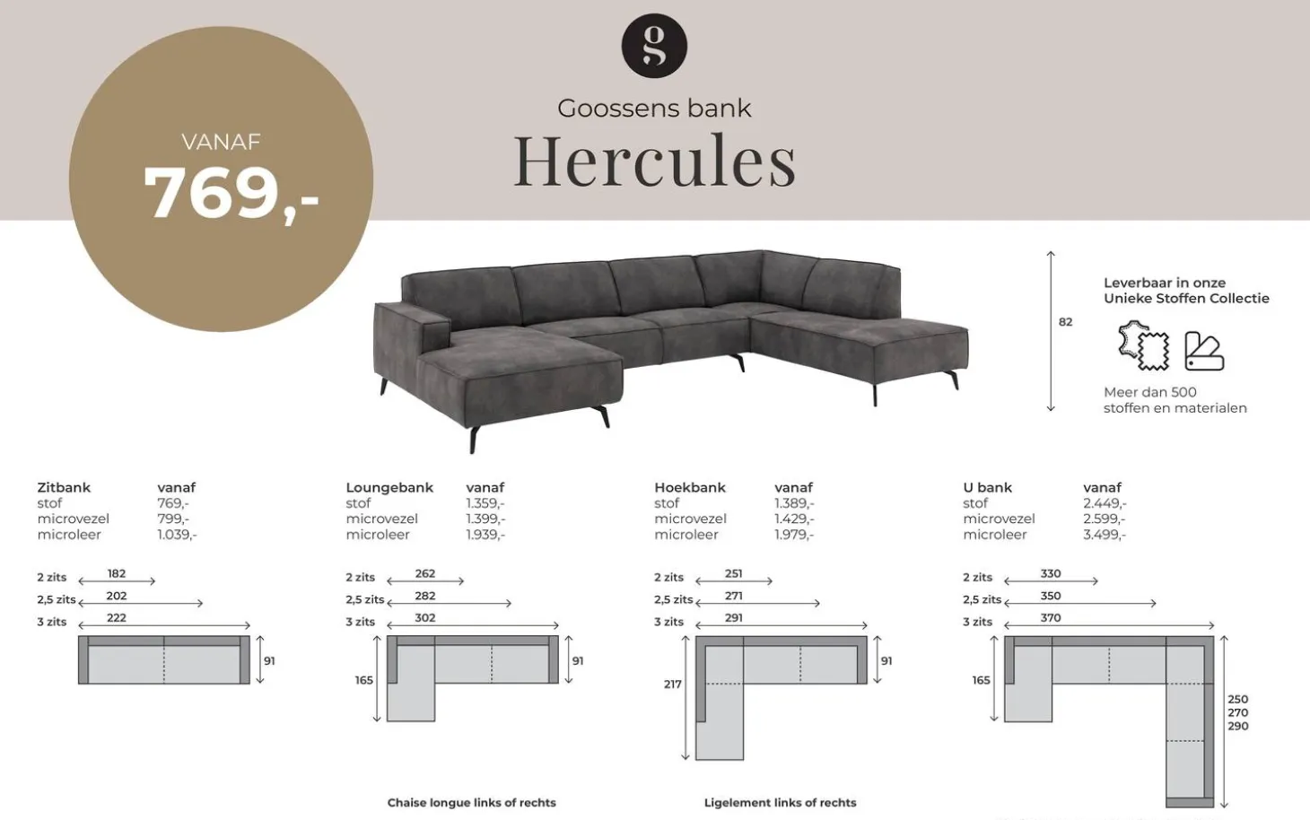 Door de grote U-vorm is er op bank Hercules plek voor iedereen. Geniet met het hele gezin van een avond voor de televisie. De bank is niet alleen door het formaat de perfecte keuze voor een gezin met kinderen. Ook door de stof is de bank geschikt voor intensief woongebruik. Tot slotte voorkomt de nosagvering kuilvorming, waardoor de bank lang meegaat. Hierdoor kun je jarenlang genieten van hoekbank Hercules.