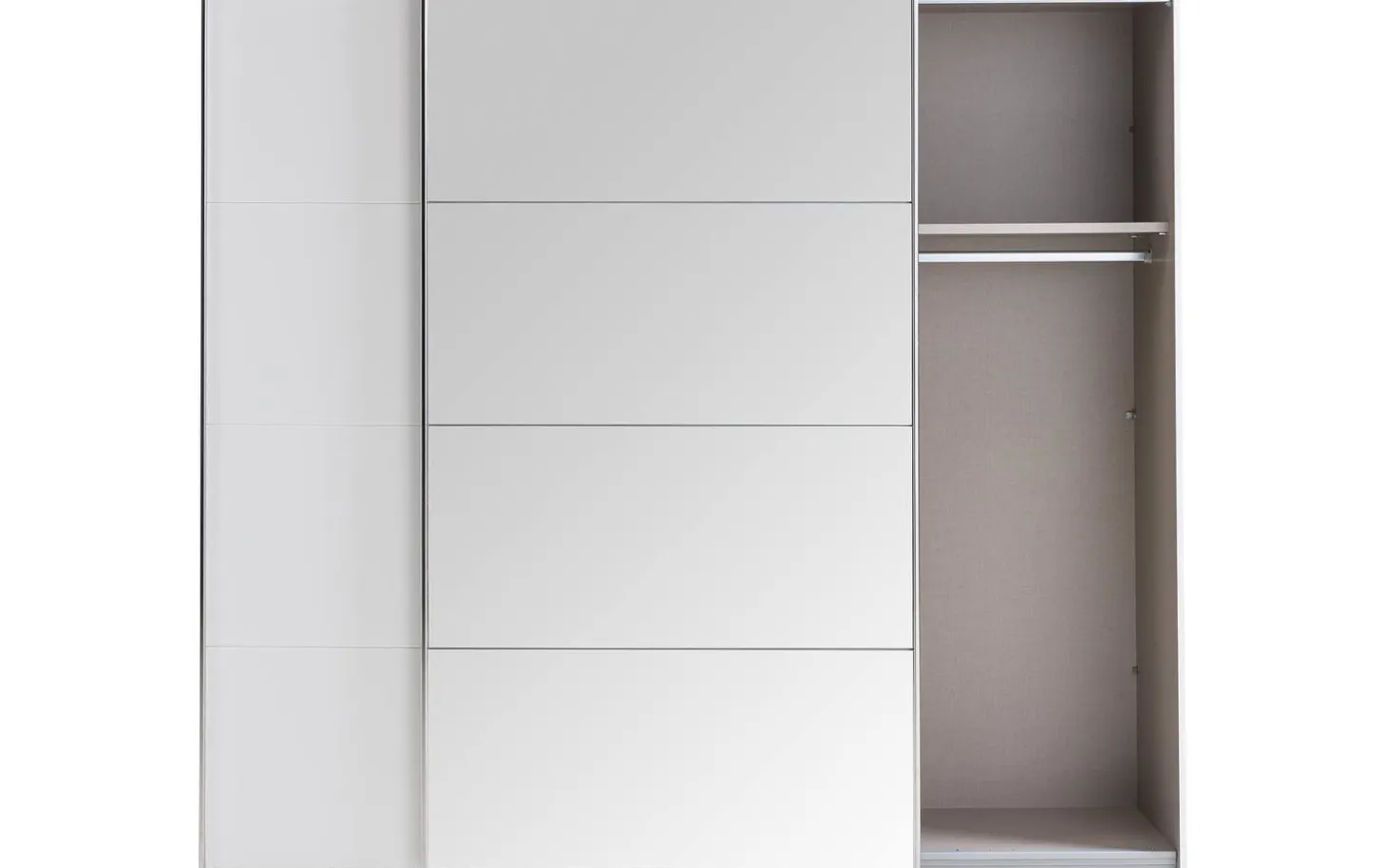 Ben je op zoek naar een strak design en een zee van opbergruimte? Slaapkamerkast Miami is wat je zoekt! De kledingkast is door de strakke vormgeving gemakkelijk te combineren met verschillende woonstijlen. De onvoorstelbaar scherpe prijs-kwaliteitverhouding zorgt voor de perfecte match. De kledingkast is voorzien van twee grote schuifdeuren in de door jou gekozen kleur. Je kunt ook kiezen voor spiegeldeuren, waardoor kledingkast Miami nóg praktischer wordt. De kast heeft standaard twee roedes en twee legplanken.