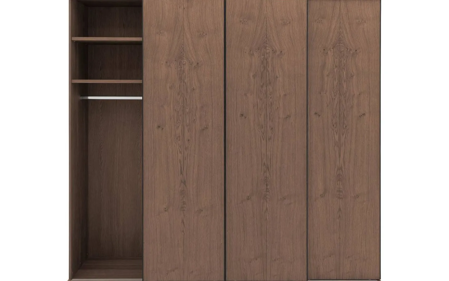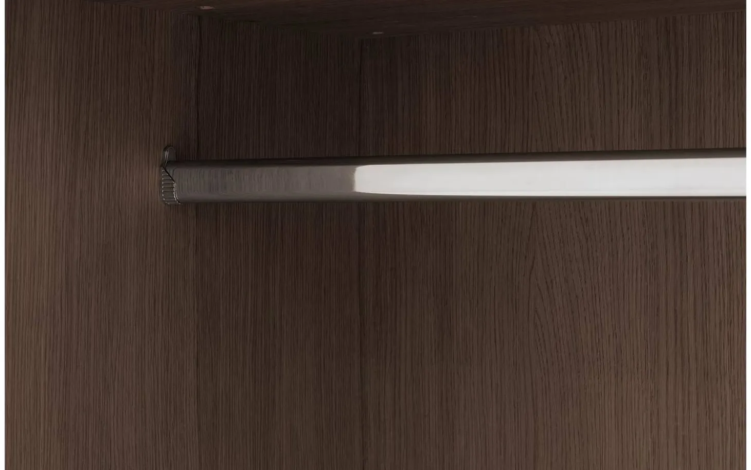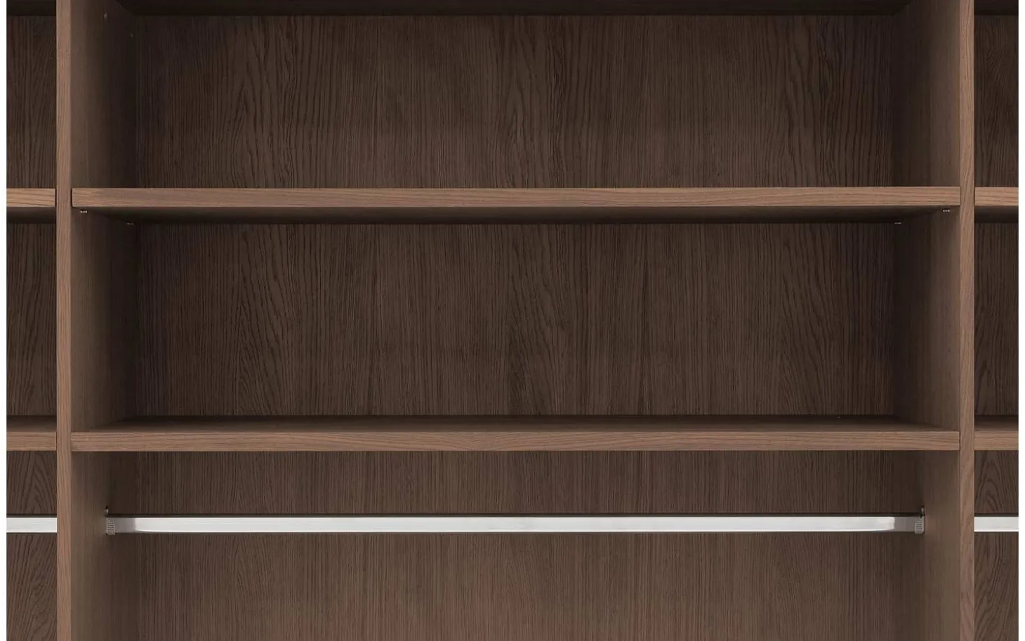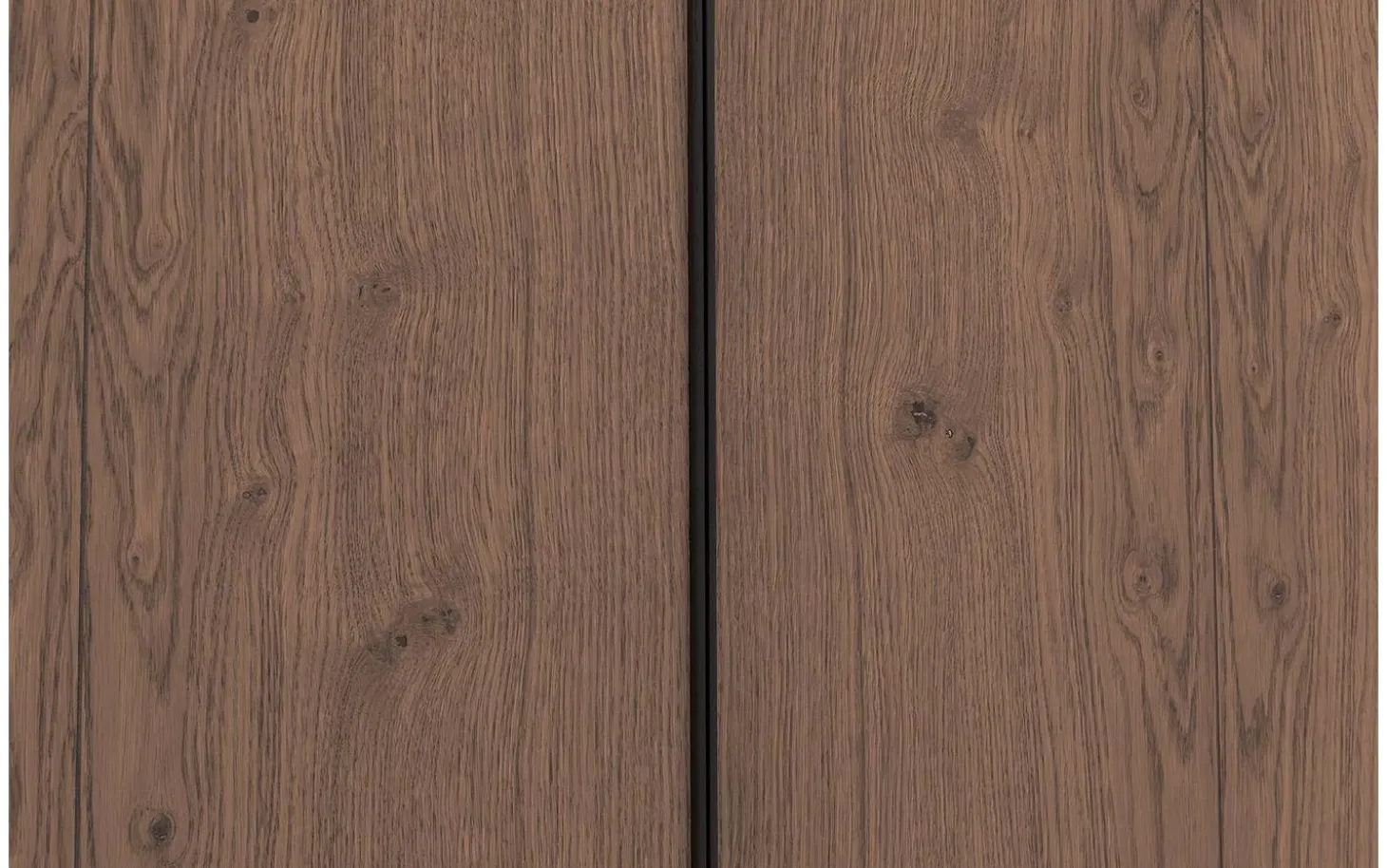 De ombouw van kledingkast Wood is van massief eiken panelen. De deuren zijn voorzien van eiken fineer.
