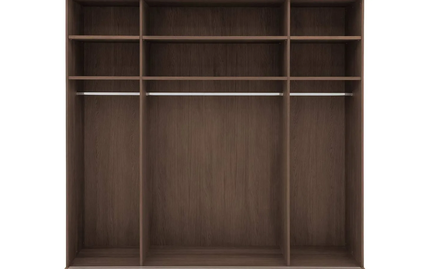 Dankzij de schuifdeuren is kledingkast Wood praktisch in gebruik. De deuren nemen minder ruimte in beslag, omdat de kastdeur de ruimte niet indraait. Bovendien zorgt het voor een strak design van de kledingkast. Vraag je je af of de kast voldoende opbergruimte heeft? Daar hoef je je geen zorgen om te maken! Ieder kastgedeelte (compartiment) heeft een roede en twee legplanken, zo beschik je over meer dan genoeg opbergruimte voor al je kleding. Wil je toch nog meer opbergruimte creëren in je kast? Je kunt speciaal voor kledingkast Wood extra legplanken of een inzetladeblok bijbestellen.