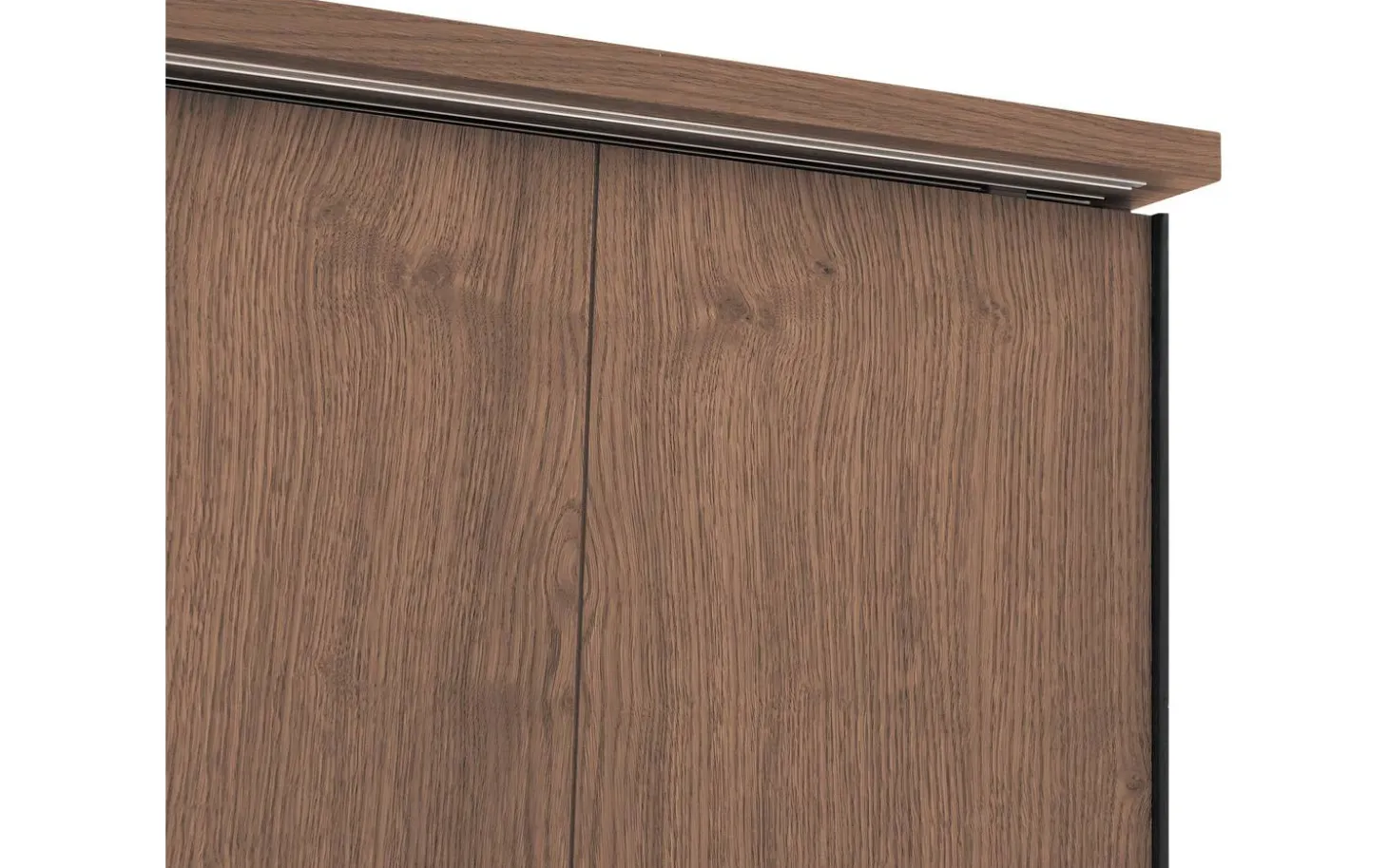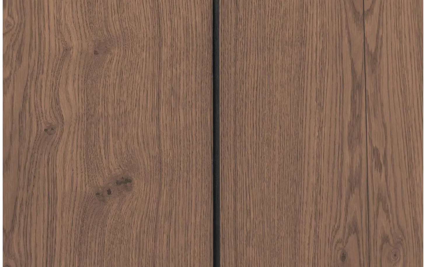 De ombouw van kledingkast Wood is van massief eiken panelen. De deuren zijn voorzien van eiken fineer.