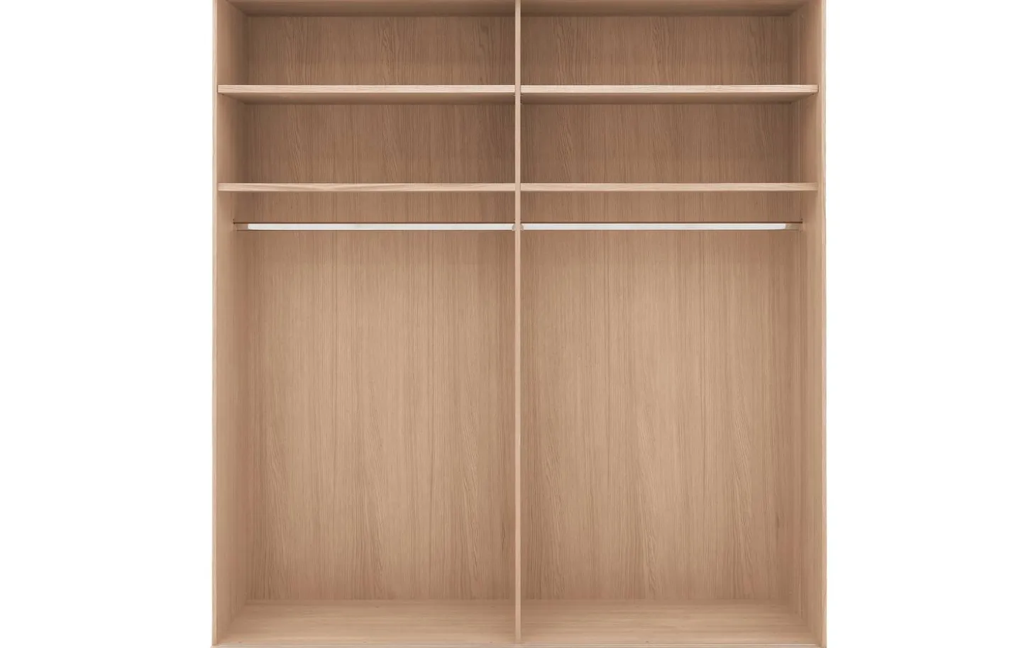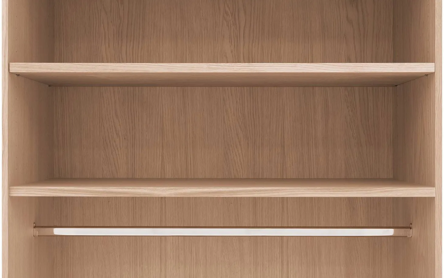 De ombouw van kledingkast Nature is van massief eiken panelen. De deuren zijn voorzien van eiken fineer.